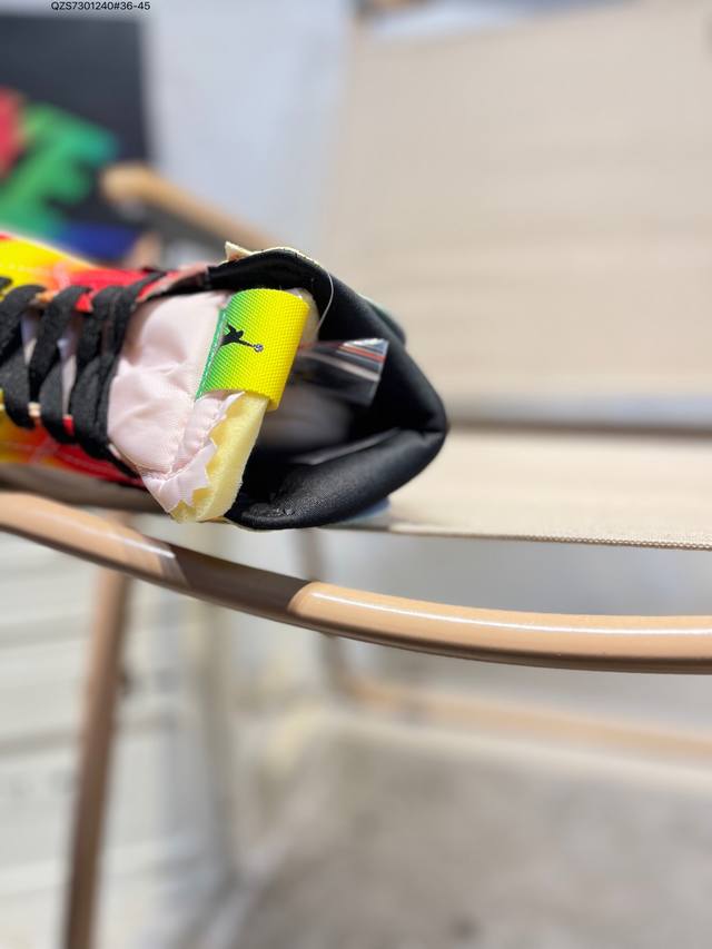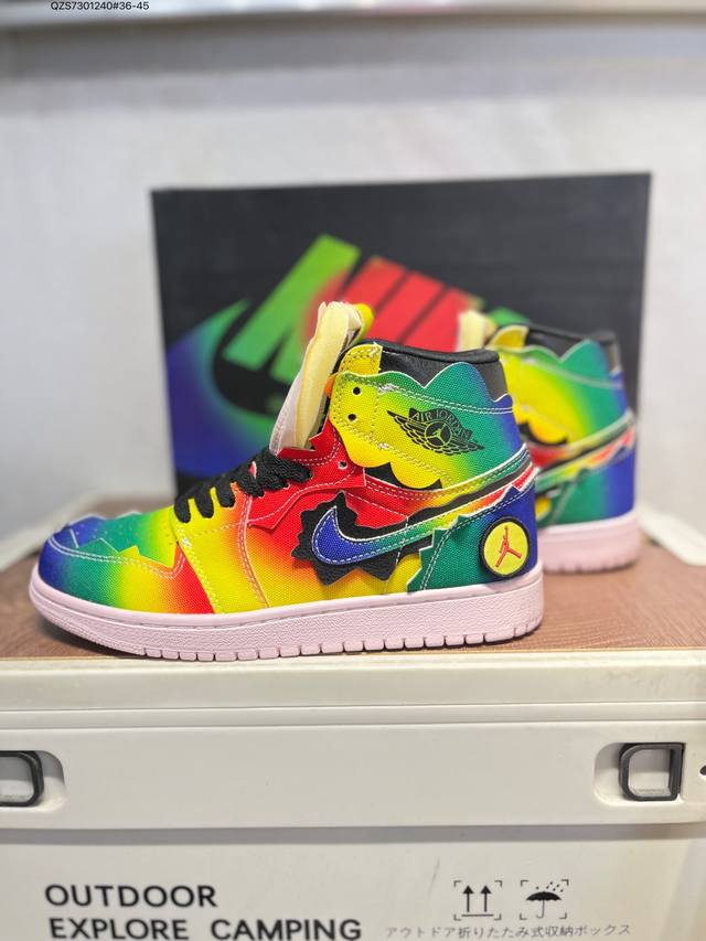 Aj1 X Jbalvin雷鬼天王联名笑脸彩虹扎染 DDD 美国雷鬼歌手Jbalvin 与拉丁天后 Jennifer Lopez 和 Shakira 同台表演。其身穿的那双Air Jordan1引起了很多人的关注,整双鞋极为醒目,设计规格极高,细节点缀丰富到会让人认为这是一双定制鞋款。 DDD 彩虹扎染的帆布覆盖整个鞋面,每块布料边缘锯齿形的剪裁首次出现,视觉效果格外新颖。 DDD 左脚的鞋舌与两只脚的后跟部位都点缀有 J Balvin 标志性的笑脸 Logo。 DDD 货号:Dc3481 Qzs7301