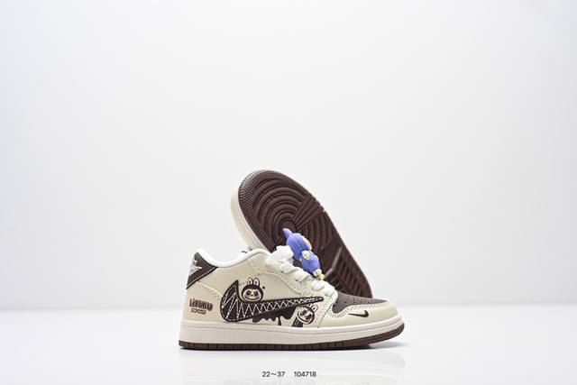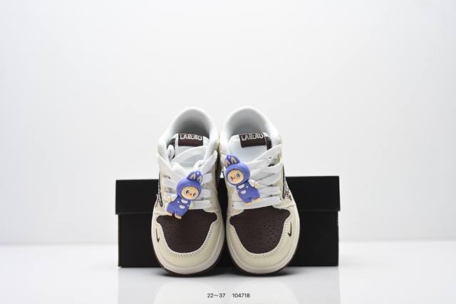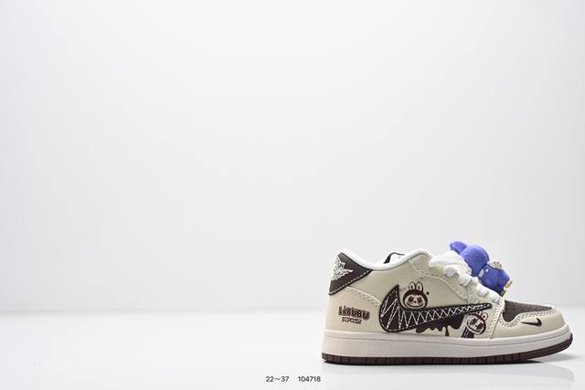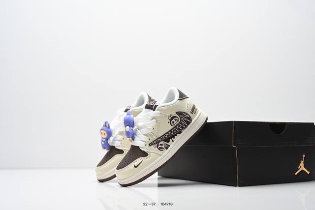 童鞋:时尚元素X Jordan Air Jordan Low 倒勾 “Labubu联名’‘,经典蓝白配色,融合了Travis Scott 独特的潮流风格,个性的