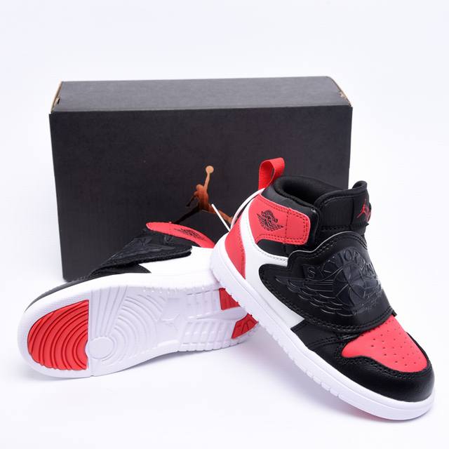 乔一真标头层魔术扣儿童运动鞋 Size:22-37.5码 经典乔丹系列 魔术扣松紧带设计,穿脱自如 中帮款式设计,保护稚嫩脚踝...