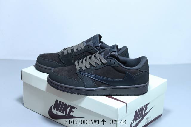 公司级aj1倒勾travis Scott X Air Jordan 1 ” Reverse Mocha “ Aj1乔1 Ts 闪电 联名倒钩 低帮文化篮球鞋 货