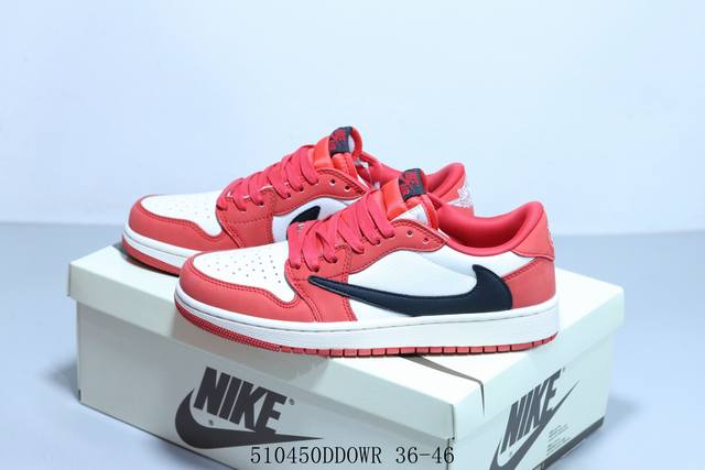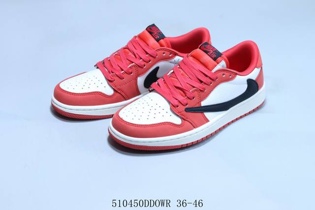 / 乔丹Air Jordan 1 Low Aj1 乔1低帮复古文化休闲运动篮球鞋红白黑 倒勾 510450Ddowr 36-46