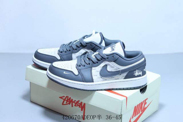 乔丹Air Jordan 1 Low Aj1 乔1低帮复古文化休闲运动篮球鞋联名 斯图西 货号 Xx3318-966 420670Adeop半 36-45
