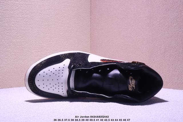 Air Jordan 1 Retro High Og Xuanwu 高帮 蛇年Cny 玄武 亚洲限定 Aj1 乔丹1代 Aj1 乔1 高邦 黑白橙 男女同款 乔丹篮球鞋系列 Jordan Brand为庆祝2025年中国农历蛇年特别推出的一款限量版球鞋,灵感源白中国古代神话中的四灵之一 玄武 这款鞋以其独特的设计和高规格的材质,成为2025年Cny 中国新年 系列中最受关注的鞋款之一,设计上融入了大量中国传统文化元素,如寿桃、仙鹤、祥云等吉祥图案,鞋身还采用了蛇纹压印和蛇鳞光泽的喷金工艺,呼