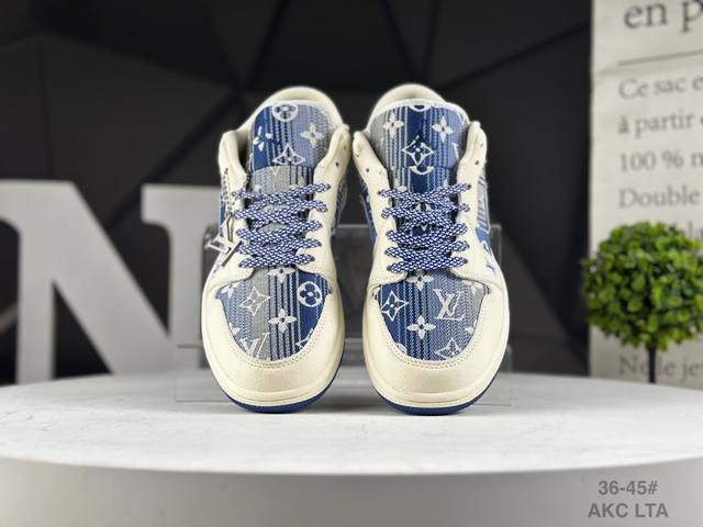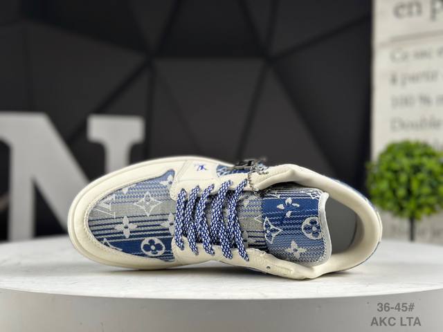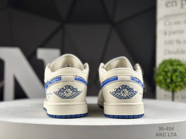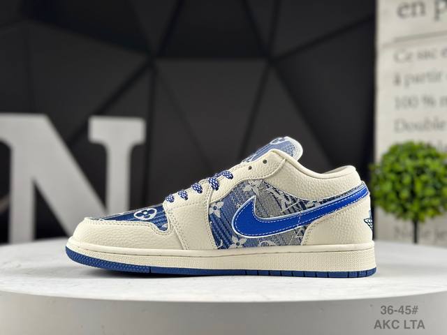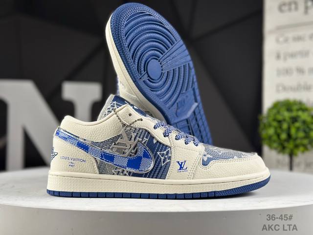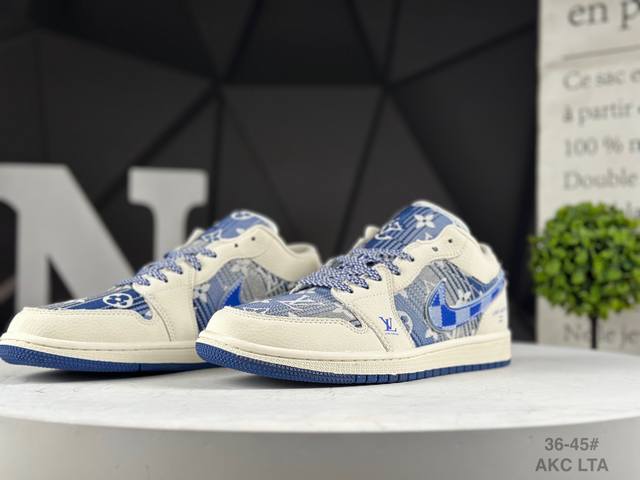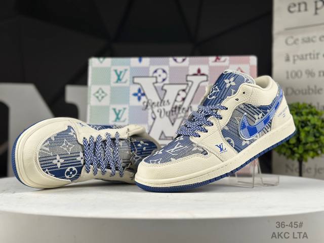 定制版 Air Jordan 1 Low Aj1 乔1 “Lv路易威登联名---米白蓝帆布牛仔印花”高端定制 低帮复古篮球鞋