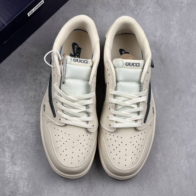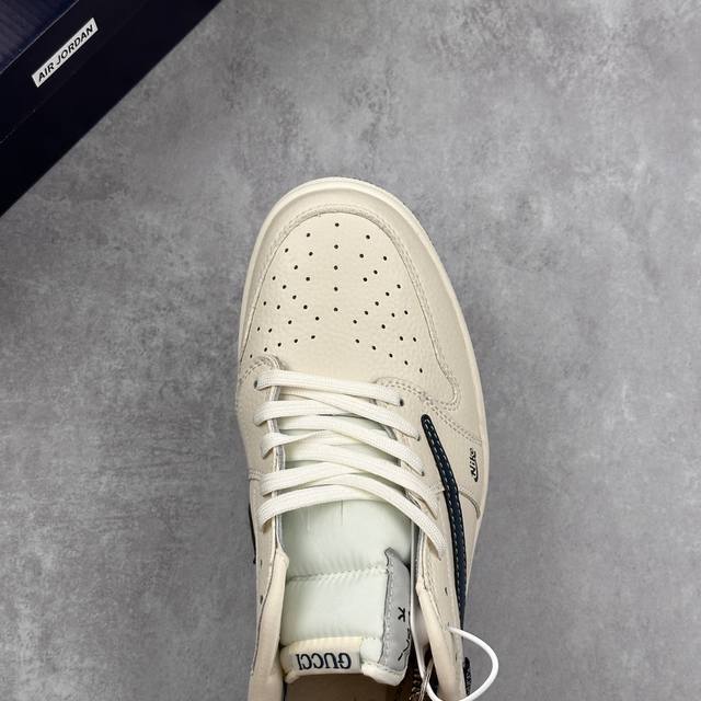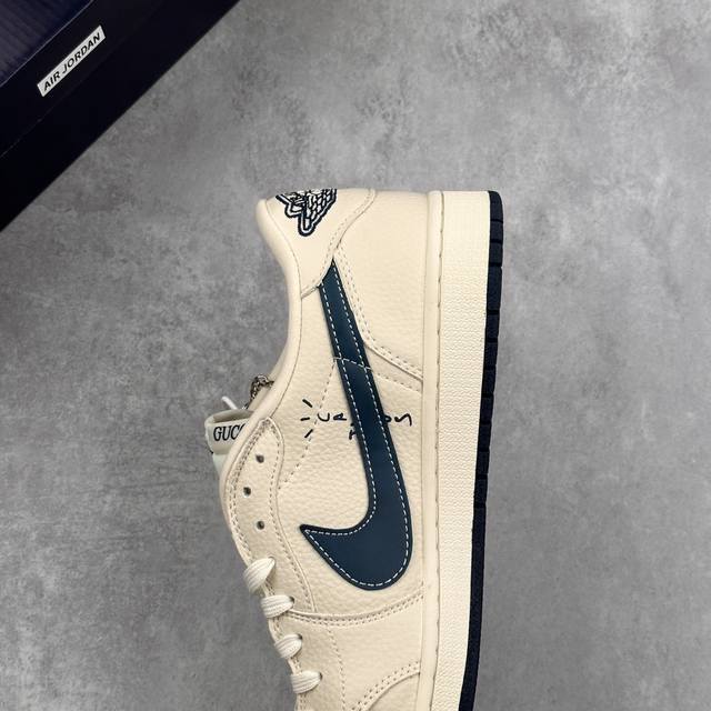 #多方联名合作融合了Travis Scott 独特的音乐风格,藤原浩个性的设计风格以及Jordan品牌的经典元素 使其成为一双具有独特身份和价值的鞋子 清新而立体的外观加上联名标识更突出了其独特身份 这种配色方案显示出活力和时尚感 在视觉上引人注目 鞋身的质感和细腻的细节处理使其显得高端而格调十足 这款“倒钩”联名是设计
