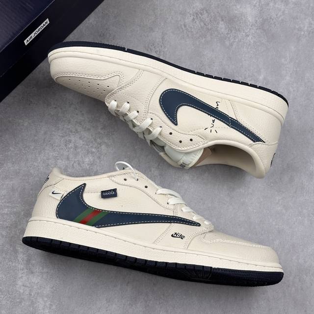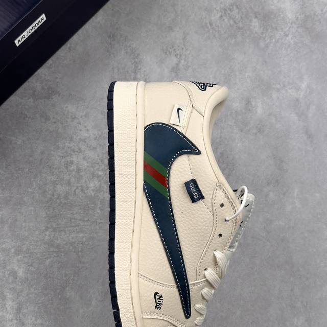 Travis Scott X Fragment Design X Air Jordan 1 Low Og Sp Aj1 乔1 古驰联名 绿红条纹勾 低帮文化休闲板鞋