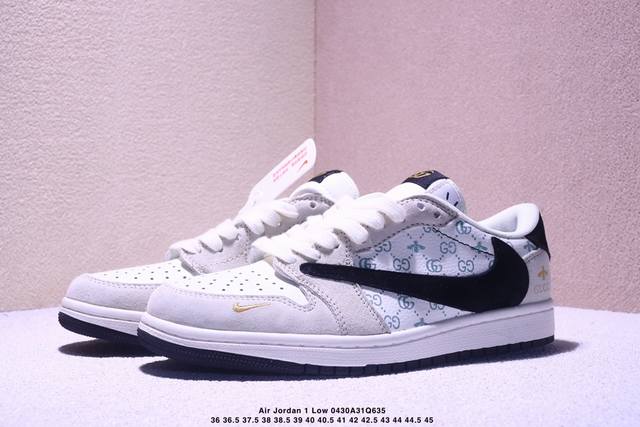 海外爆款限量发售!公司级 Travis Scott X Fragment Design X Jordan Air Jordan 1 Low Og Sp “古驰联名 黑勾奶咖” 多方联名合作融合了Travis Scott 独特的音乐风格,藤原浩个性的设计风格以及Jordan品牌的经典元素 使其成为一双具有独特身份和价值的鞋子 清新而立体的外观加上联名标识更突出了其独特身份 这种配色方案显示出活力和时尚感 在视觉上引人注目 鞋身的质感和细腻的细节处理使其显得高端而格调十足 这款“倒钩”联名是设计与创意完美结合