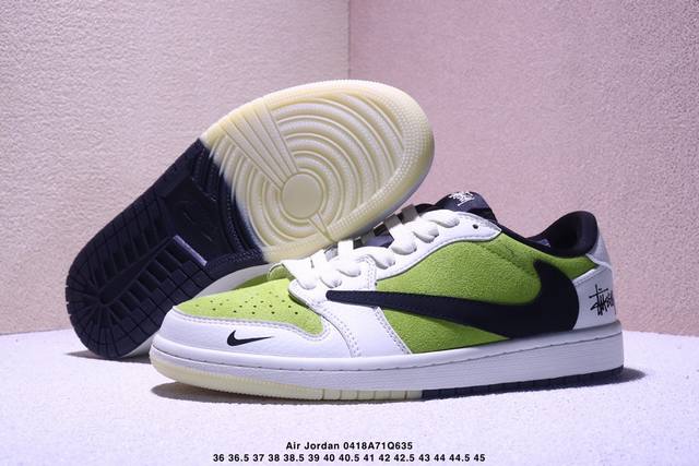 海外爆款限量发售!公司级 Travis Scott X Fragment Design X Jordan Air Jordan 1 Low Og Sp 斯图西联名 “米绿黑双拼” 多方联名合作融合了Travis Scott 独特的音乐风格,藤原浩个性的设计风格以及Jordan品牌的经典元素 使其成为一双具有独特身份和价值的鞋子 清新而立体的外观加上联名标识更突出了其独特身份 这种配色方案显示出活力和时尚感 在视觉上引人注目 鞋身的质感和细腻的细节处理使其显得高端而格调十足 这款“倒钩”联名是设计与创意完美