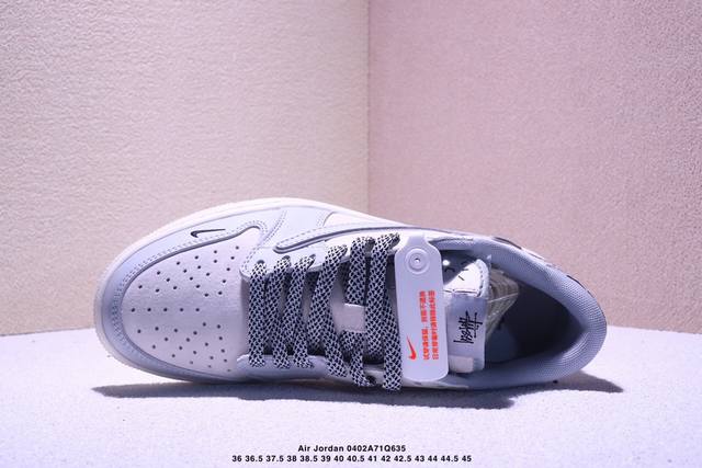 海外爆款限量发售!公司级 Travis Scott X Fragment Design X Jordan Air Jordan 1 Low Og Sp “斯图西联名 亮银灰” 多方联名合作融合了Travis Scott 独特的音乐风格,藤原浩个性的设计风格以及Jordan品牌的经典元素 使其成为一双具有独特身份和价值的鞋子 清新而立体的外观加上联名标识更突出了其独特身份 这种配色方案显示出活力和时尚感 在视觉上引人注目 鞋身的质感和细腻的细节处理使其显得高端而格调十足 这款“倒钩”联名是设计与创意完美结合