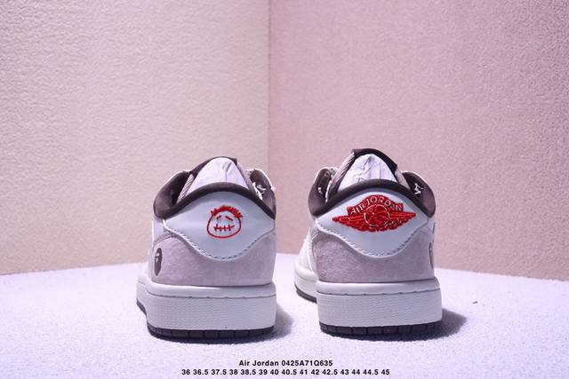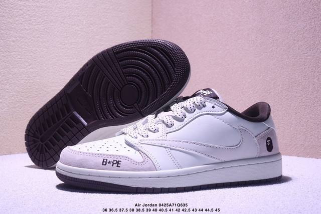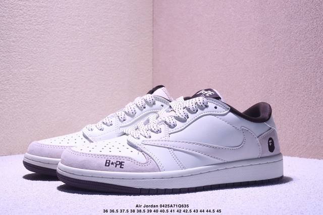 海外爆款限量发售!公司级 Travis Scott X Fragment Design X Jordan Air Jordan 1 Low Og Sp “Bape联名 菱花白” 多方联名合作融合了Travis Scott 独特的音乐风格,藤原浩个性的设计风格以及Jordan品牌的经典元素 使其成为一双具有独特身份和价值的鞋子 清新而立体的外观加上联名标识更突出了其独特身份 这种配色方案显示出活力和时尚感 在视觉上引人注目 鞋身的质感和细腻的细节处理使其显得高端而格调十足 这款“倒钩”联名是设计与创意完美结