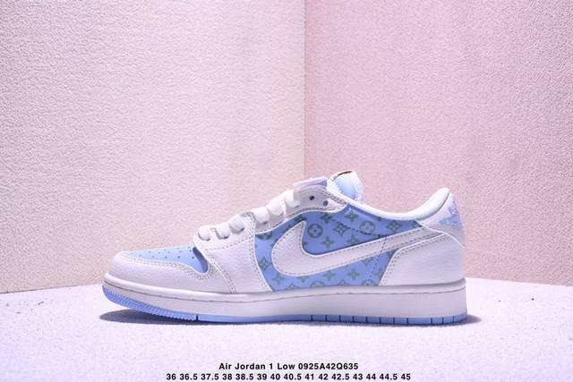 海外爆款限量发售!高端定制 Travis Scott X Fragment Design X Jordan Air Jordan 1 Low Og Sp “古驰联名------米白灰绿印花” 高端定制 倒钩三方联名低帮篮球鞋
