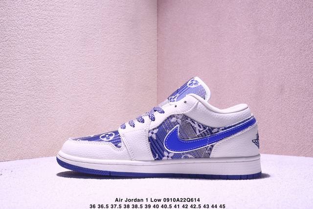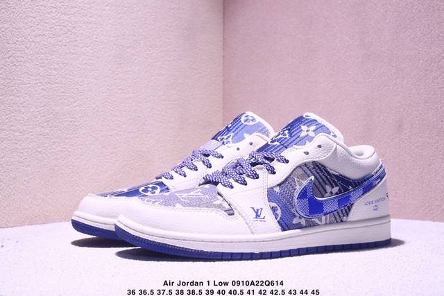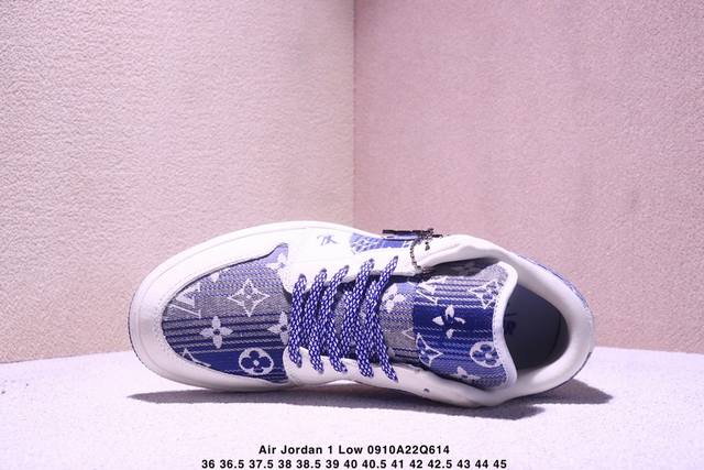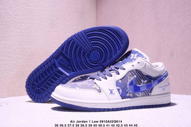海外爆款限量发售!高端定制Air Jordan 1 Low Aj1 乔1 “Lv路易威登联名---白蓝帆布印花”高端定制 低帮复古篮球鞋