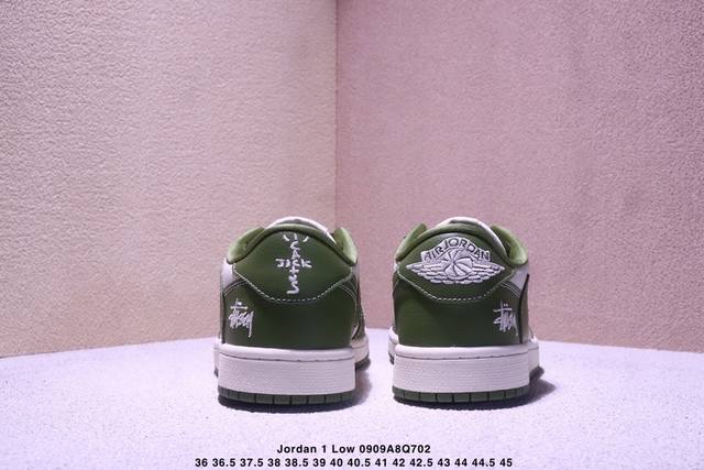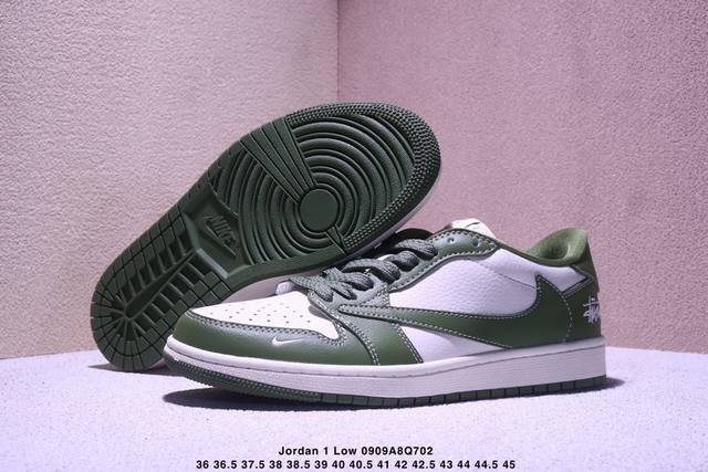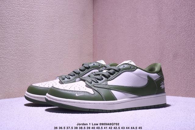 海外爆款限量发售! Travis Scott X Jordan 1 Low “斯图西联名 米白青竹绿” 高端定制 乔丹倒勾低帮休闲板鞋 大厂纯原品质出货 纯正版型 定制鞋盒 皮料切割干净无任何毛边 细节完美 超高清洁度