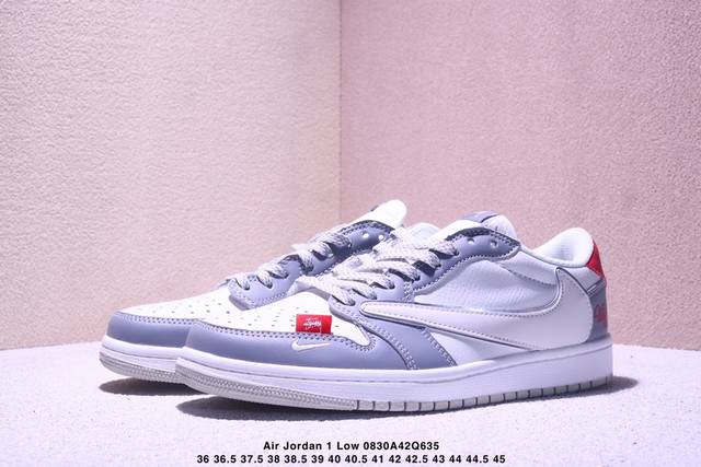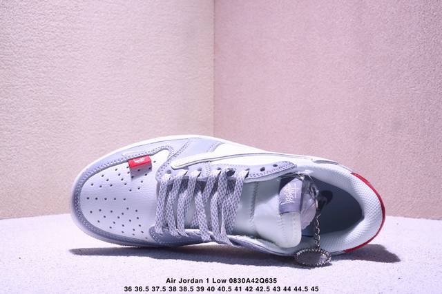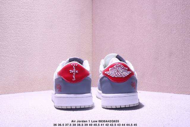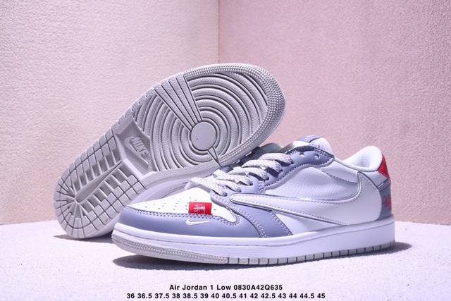 海外爆款限量发售!Travis Scott X Fragment Design X Jordan Air Jordan 1 Low Og Sp “斯图西联名 白灰红尾” 多方联名合作融合了Travi翻毛蓝勾S Scott 独特的音乐风格,藤原浩个性的设计风格以及Jordan品牌的经典元素 使其成为一双具有独特身份和价值的鞋子 清新而立体的外观加上联名标识更突出了其独特身份 这种配色方案显示出活力和时尚感 在视觉上引人注目 鞋身的质感和细腻的细节处理使其显得高端而格调十足 这款“倒钩”联名是设计与创意完美结