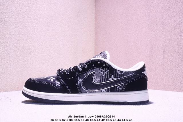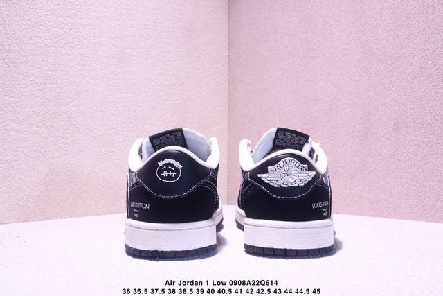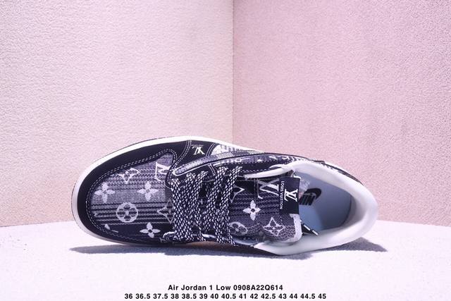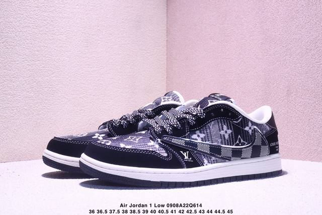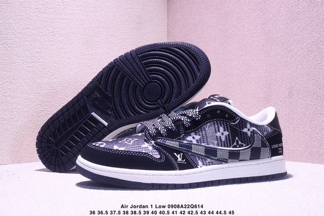 海外爆款限量发售!Travis Scott X Fragment Design X Jordan Air Jordan 1 Low Og Sp “路易威登Lv联名---黑灰帆布Lv印花” 高端定制 多方联名合作融合了Travi S Scott 独特的音乐风格,藤原浩个性的设计风格以及Jordan品牌的经典元素 使其成为一双具有独特身份和价值的鞋子 清新而立体的外观加上联名标识更突出了其独特身份 这种配色方案显示出活力和时尚感 在视觉上引人注目 鞋身的质感和细腻的细节处理使其显得高端而格调十足 这款“倒钩”