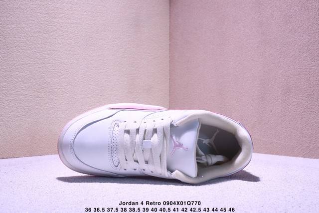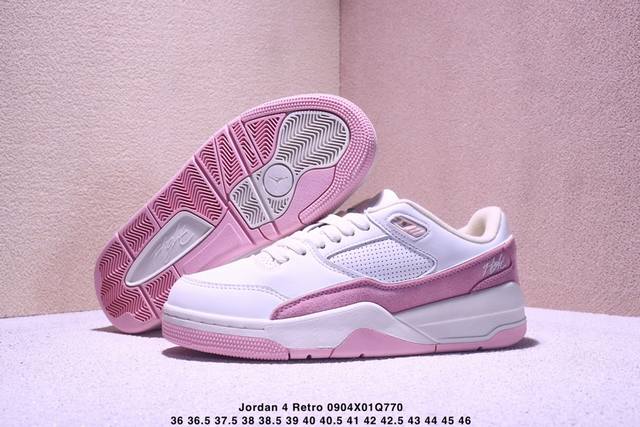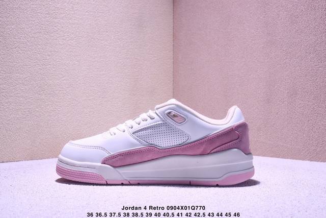 Air Jordan 4 Retro Flight Court 低帮 米紫色 Aj4 乔丹4代 Aj4 乔4 低邦 白紫色 乔丹篮球鞋系列 鞋款整体以米白色皮革打造,鞋舌及后跟Jumpxman Logo采用紫色刺绣点缀,后跟侧身Flight字样也辅以紫色刺绣呈现,秉承轻量化的速度型篮球鞋设计思想完成设计,降低重量的同时提升舒适度,中底延续前作使用了分离式后掌可视化Air Solem气垫。鞋带孔和后跟鞋提以籃网为造型灵感,将篮球运动巧妙融入到鞋款的设计之中,使鞋身整体富有流动性、节奏感和优雅