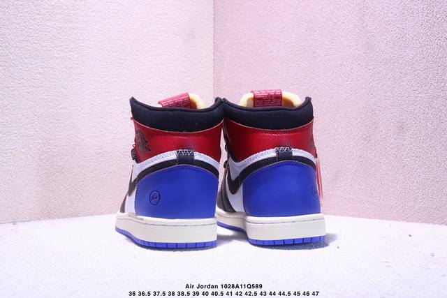 Fragment Design X Union X Jordan Air Jordan 1 Retro High Og Nrg 三方联名款 牛皮 舒适 防滑 高帮 复古篮球鞋 男女同款 Air Jordan 1于1985年推出,是耐克第一双以乔丹名字命名的篮球鞋,正是这双鞋,开启了一个时代。Air Jordan 1外形的灵感来自于在当年风靡一时的Airforce 1,同时降低中底厚度,减轻重量,增加贴地感,并采用了后掌Air Sole气垫和最经典的飞翼Logo来自于当时的Nike创意总监Peter Moo