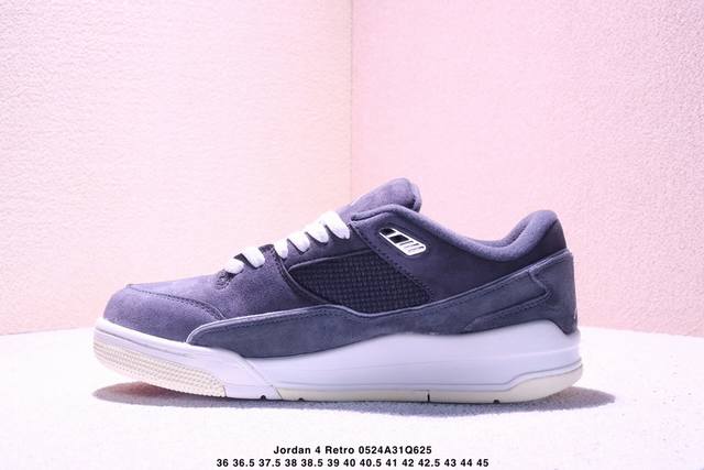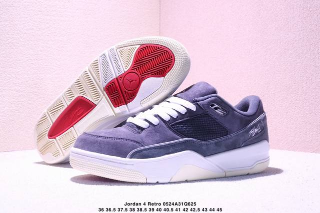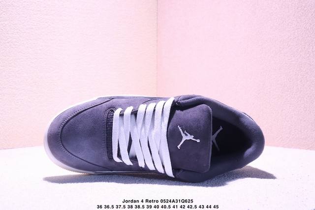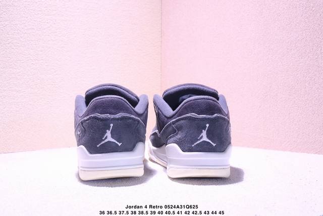 jordan 乔丹 男女鞋真标半码制 升级原楦原纸版开发版型 采用翻毛皮组合粒面牛剖革鞋面材质 缜密定位拉帮及注胶效果 中底pu内嵌开窗式Air缓震气垫颜值没的说 耐克Nike Air Jordan 4 Retro Rm Diffused Blue 迈克尔 乔丹Aj4代重置版系列中帮复古休闲运动文化篮球鞋