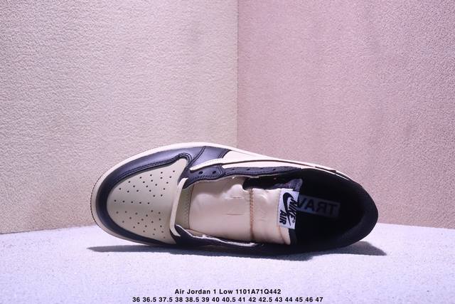 Travis Scott X Fragment Design X Jordan Air Jordan 1 Low 联名多方联名合作融合了Travis Scott 独特的音乐风格,藤原浩个性的设计风格以及Jordan品牌的经典元素 使其成为一双具有独特身份和价值的鞋子 清新而立体的外观加上联名标识更突出了其独特身份 这种配色方案显示出活力和时尚感 在视觉上引人注目 鞋身的质感和细腻的细节处理使其显得高端而格调十足 这款“倒钩”联名是设计与创意完美结合 融合多方的个性风格是一款备受瞩目的潮流鞋款 低帮休闲板鞋
