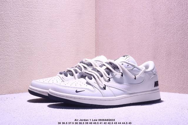 Travis Scott X Fragment Design X Jordan Air Jordan 1 Low Og Sp “黑Logo抽绳” 多方联名合作融合了Travis Scott 独特的音乐风格,藤原浩个性的设计风格以及Jordan品牌的经典元素 使其成为一双具有独特身份和价值的鞋子 清新而立体的外观加上联名标识更突出了其独特身份 这种配色方案显示出活力和时尚感 在视觉上引人注目 鞋身的质感和细腻的细节处理使其显得高端而格调十足 这款“倒钩”联名是设计与创意完美结合 融合多方的个性风格是一款备受