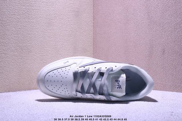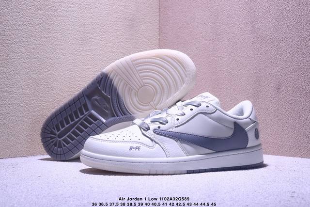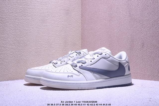 Travis Scott X Fragment Design X Jordan Air Jordan 1 Low Og Sp Bape联名 “白灰” 多方联名合作融合了Travis Scott 独特的音乐风格,藤原浩个性的设计风格以及Jordan品牌的经典元素 使其成为一双具有独特身份和价值的鞋子 清新而立体的外观加上联名标识更突出了其独特身份 这种配色方案显示出活力和时尚感 在视觉上引人注目 鞋身的质感和细腻的细节处理使其显得高端而格调十足 这款“倒钩”联名是设计与创意完美结合 融合多方的个性风格是一款
