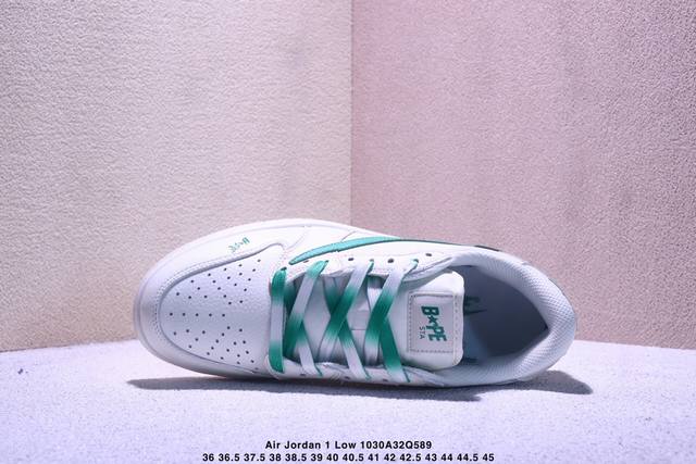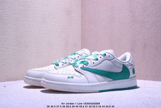 Travis Scott X Fragment Design X Jordan Air Jordan 1 Low Og Sp Bape联名 “白绿” 多方联名合作融合了Travis Scott 独特的音乐风格,藤原浩个性的设计风格以及Jordan品牌的经典元素 使其成为一双具有独特身份和价值的鞋子 清新而立体的外观加上联名标识更突出了其独特身份 这种配色方案显示出活力和时尚感 在视觉上引人注目 鞋身的质感和细腻的细节处理使其显得高端而格调十足 这款“倒钩”联名是设计与创意完美结合 融合多方的个性风格是一款