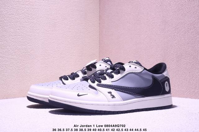 Travis Scott X Fragment Design X Jordan Air Jordan 1 Low Og Sp “Bape联名 茶褐” 多方联名合作融合了Travis Scott 独特的音乐风格,藤原浩个性的设计风格以及Jordan品牌的经典元素 使其成为一双具有独特身份和价值的鞋子 清新而立体的外观加上联名标识更突出了其独特身份 这种配色方案显示出活力和时尚感 在视觉上引人注目 鞋身的质感和细腻的细节处理使其显得高端而格调十足 这款“倒钩”联名是设计与创意完美结合 融合多方的个性风格是一款