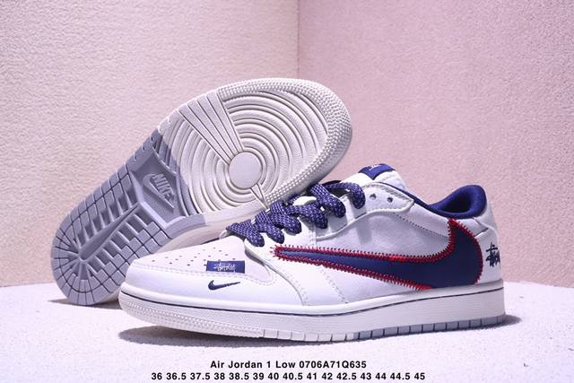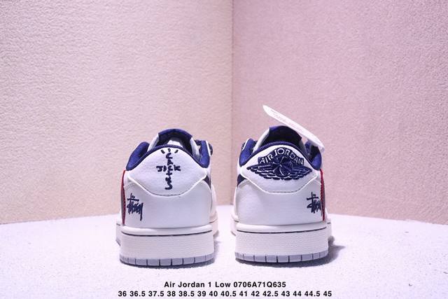 Travis Scott X Fragment Design X Jordan Air Jordan 1 Low Og Sp Lv联名 “黑牛仔印花” 多方联名合作融合了Travis Scott 独特的音乐风格,藤原浩个性的设计风格以及Jordan品牌的经典元素 使其成为一双具有独特身份和价值的鞋子 清新而立体的外观加上联名标识更突出了其独特身份 这种配色方案显示出活力和时尚感 在视觉上引人注目 鞋身的质感和细腻的细节处理使其显得高端而格调十足 这款“倒钩”联名是设计与创意完美结合 融合多方的个性风格是一