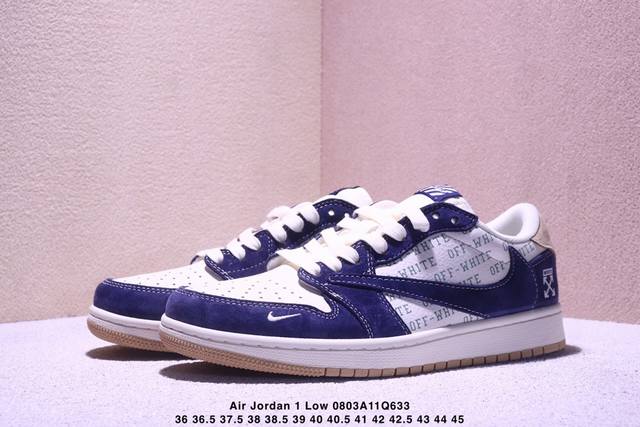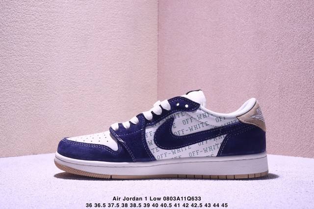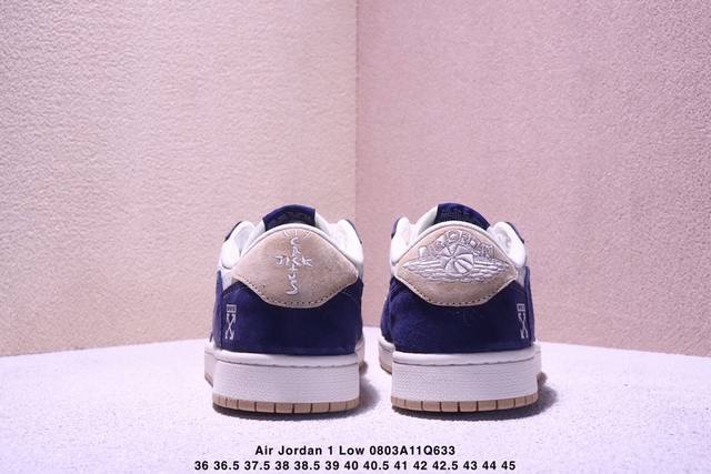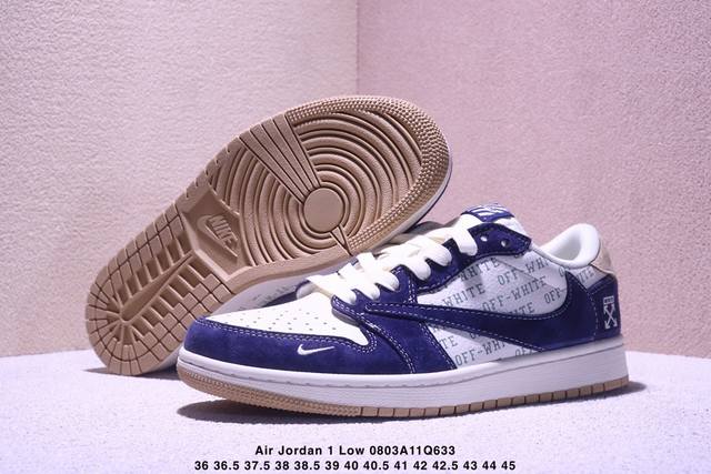 Travis Scott X Fragment Design X Jordan Air Jordan 1 Low Og Sp “Off-White联名 卡其翻毛蓝” 多方联名合作融合了Travis Scott 独特的音乐风格,藤原浩个性的设计风格以及Jordan品牌的经典元素 使其成为一双具有独特身份和价值的鞋子 清新而立体的外观加上联名标识更突出了其独特身份 这种配色方案显示出活力和时尚感 在视觉上引人注目 鞋身的质感和细腻的细节处理使其显得高端而格调十足 这款“倒钩”联名是设计与创意完美结合 融合多方