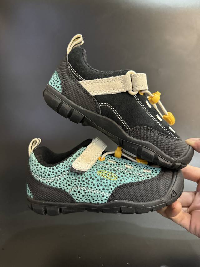 Keen 喷绘联名款户外儿童登山鞋 Size:24-37码 新配色好好看 优质麂皮面料,轻微防水 魔术贴松紧带设计,穿脱方便 橡胶耐磨防滑大底,脚感超赞