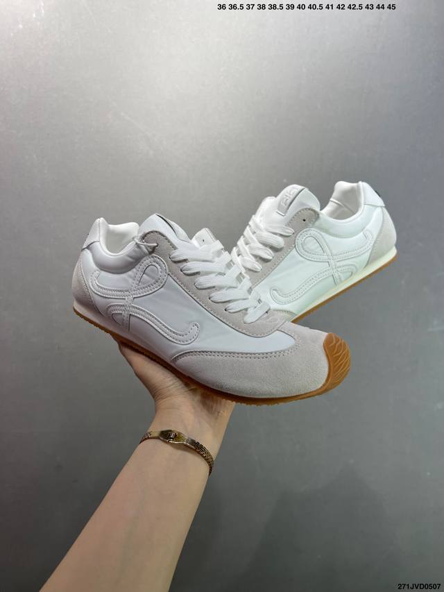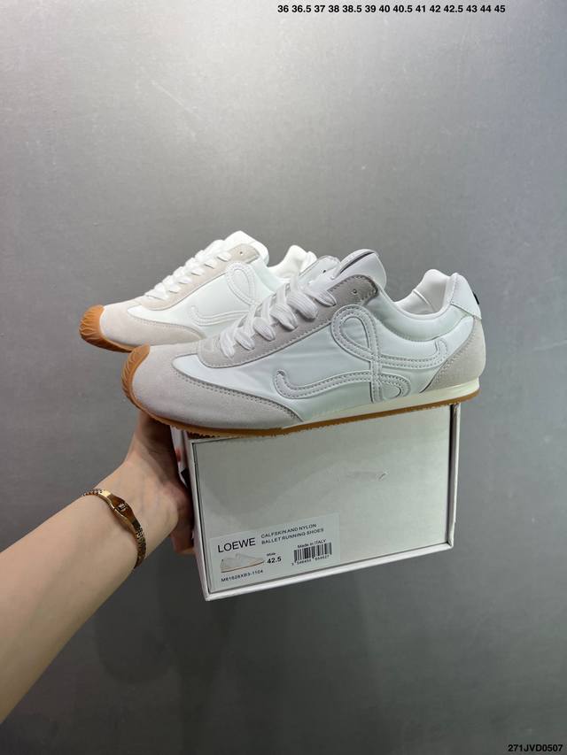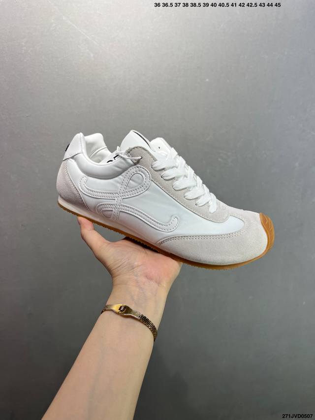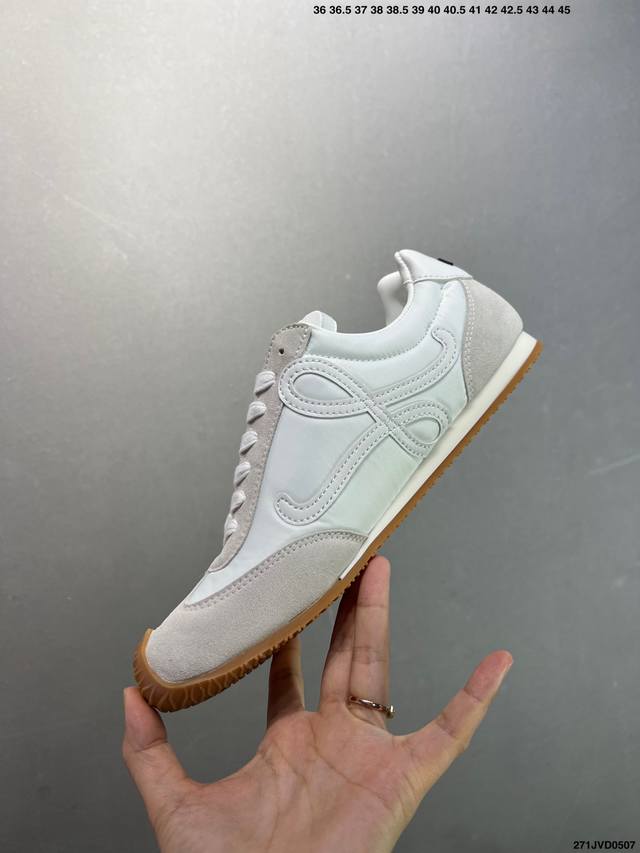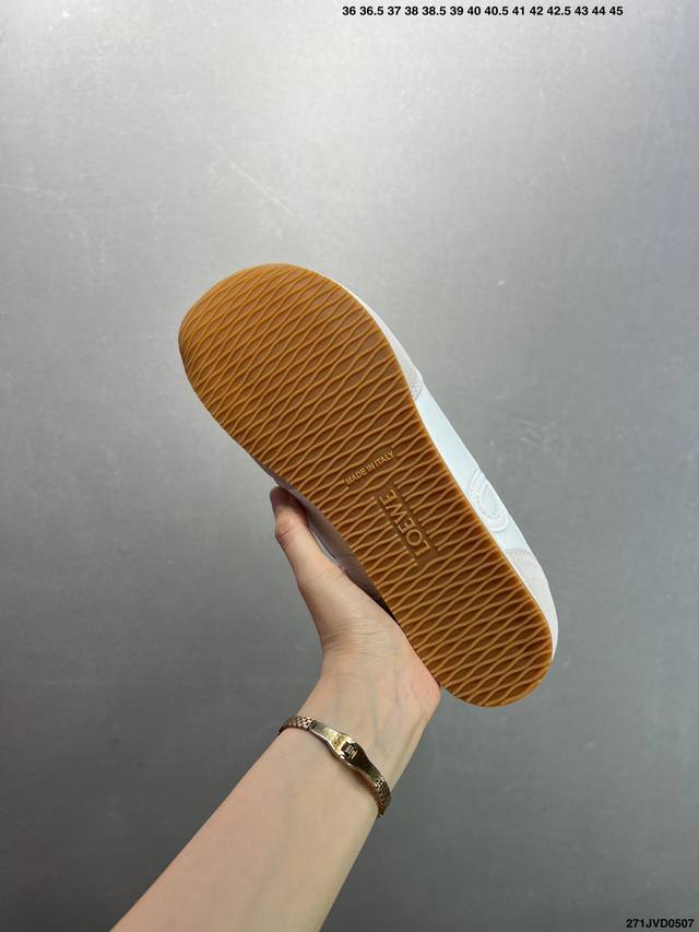 外贸出口订单 广东原厂 作为Loewe的标志性设计 超柔软,轻便且灵活的鞋底,新的波浪纹理橡胶外底,延伸至鞋头,升级的柔软皮革内衬和鞋床,提供最大舒适感,后跟有3D注塑橡胶徽标,真皮和皮料混搭彰显复古风格 内增高拼色德训鞋 阿甘鞋 小白鞋 拼色拼接鞋面 非常高级隐藏式小内增高 脚后跟设计新颖 柔软舒适 会被评为年度最舒适的暴走鞋 如履平地 原版细节 鞋面由进口麂皮 牛皮 原版布拼接 牛皮垫脚 原版