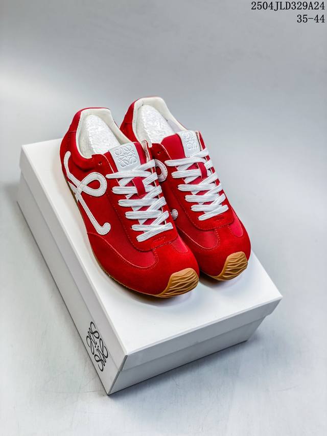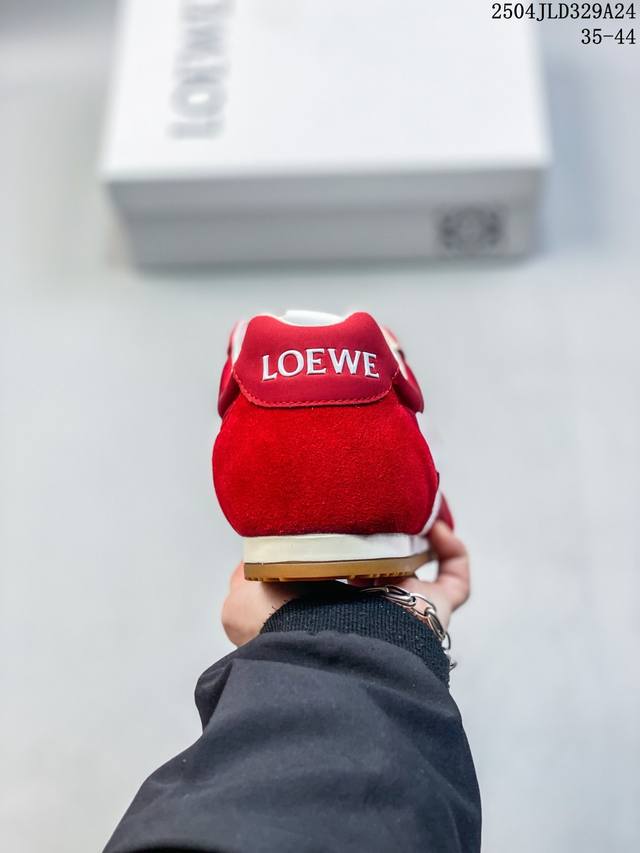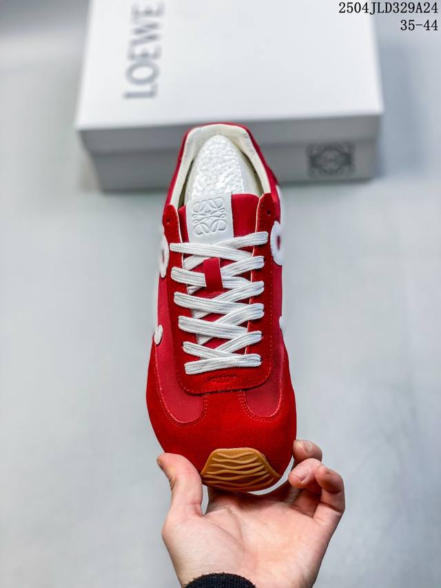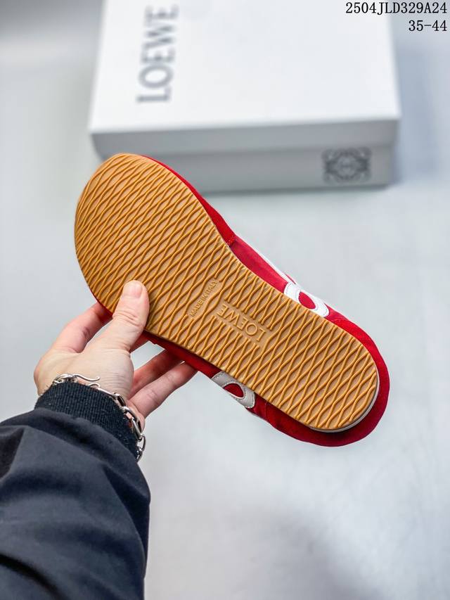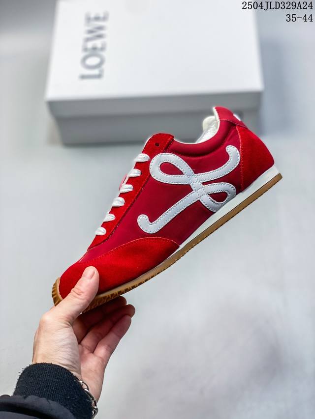 Loewe罗意威 Ballet Runner 小牛皮 圆头系带 低帮 生活休闲鞋 罗意威全新版大头运动鞋Ballet Runner ,以其独特的设计和舒适度赢得了时尚界的青睐。这款鞋的鞋头设计充满趣味,脚后跟部分同样新颖,柔软且舒适,被誉为年度最舒适的暴走鞋。穿上它,仿佛如履平地,轻松享受运动的乐趣。鞋型简约利落,低帮设计展现时尚感,侧面带有品牌Logo的首字母,细节之处透露出品牌的高品质。这款鞋不仅舒适,还极具百搭性,无论是日常出行还是运动场合,都能展现出独特的时尚感。设计灵感源自