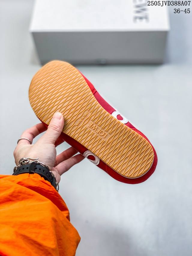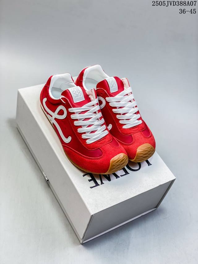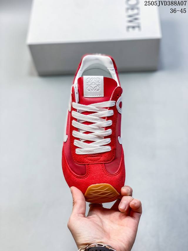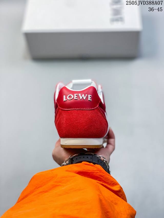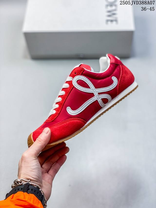 Loewe罗意威 Ballet Runner 小牛皮 圆头系带 低帮 生活休闲鞋 罗意威全新版大头运动鞋Ballet Runner ,以其独特的设计和舒适度赢得了时尚界的青睐。这款鞋的鞋头设计充满趣味,脚后跟部分同样新颖,柔软且舒适,被誉为年度最舒适的暴走鞋。穿上它,仿佛如履平地,轻松享受运动的乐趣。鞋型简约利落,低帮设计展现时尚感,侧面带有品牌Logo的首字母,细节之处透露出品牌的高品质。这款鞋不仅舒适,还极具百搭性,无论是日常出行还是运动场合,都能展现出独特的时尚感。设计灵感源自