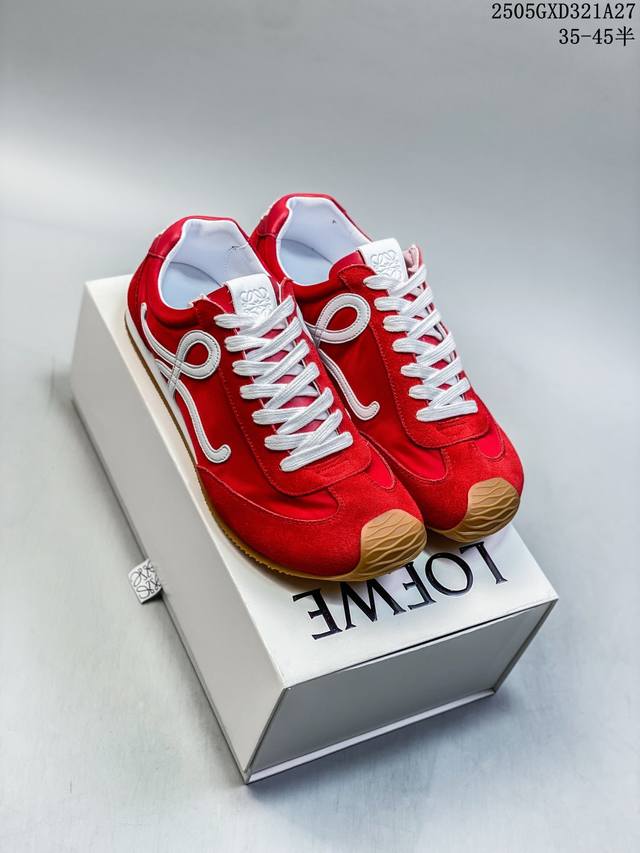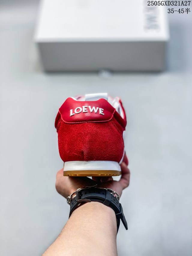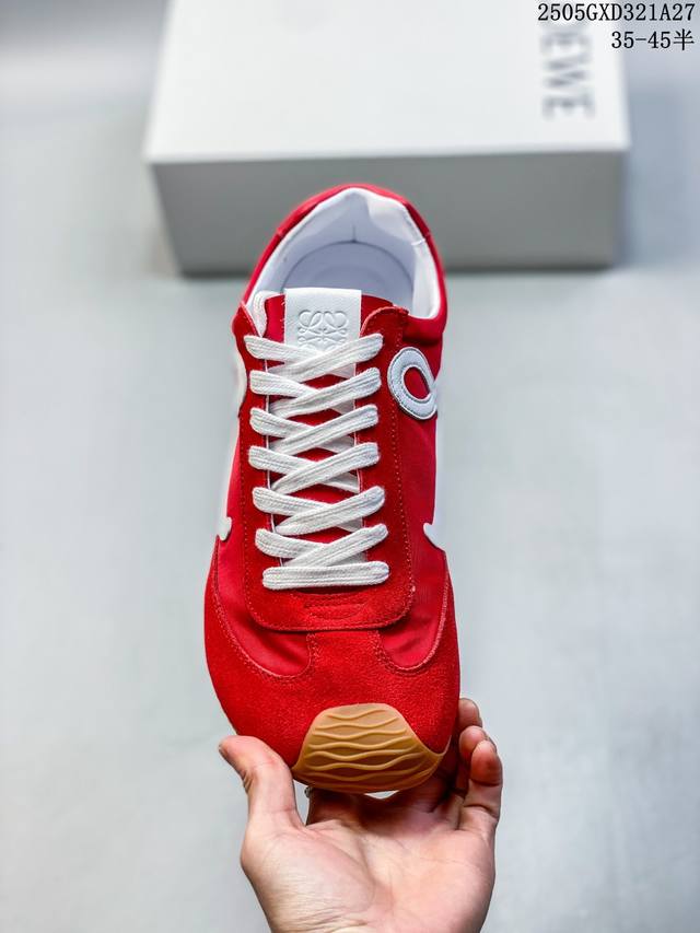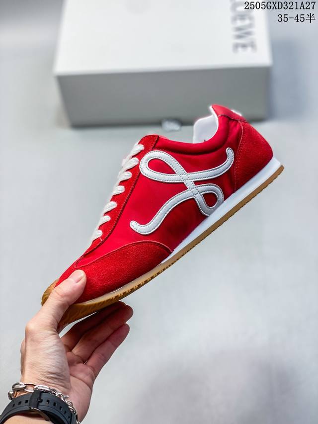 loewe罗意威 Ballet Runner 2.0小牛皮 圆头系带 低帮 生活休闲鞋 罗意威全新版大头运动鞋Ballet Runner2.0 以其独特的设计和舒适度赢得了时尚界的青睐 这款鞋的鞋头设计充满趣味 脚后跟部分同样新颖 柔软且舒适 被誉为年度最舒适的暴走鞋 穿上它 仿佛如履平地 轻松享受运动的乐趣 鞋型简约利落 低帮设计展现时尚感 侧面带有品牌Logo的首字母 细节之处透露出品牌的高品质 这款鞋不仅舒适 还极具百搭性 无论是日常出行还是运动场合 都能展现出独特的时尚感 设
