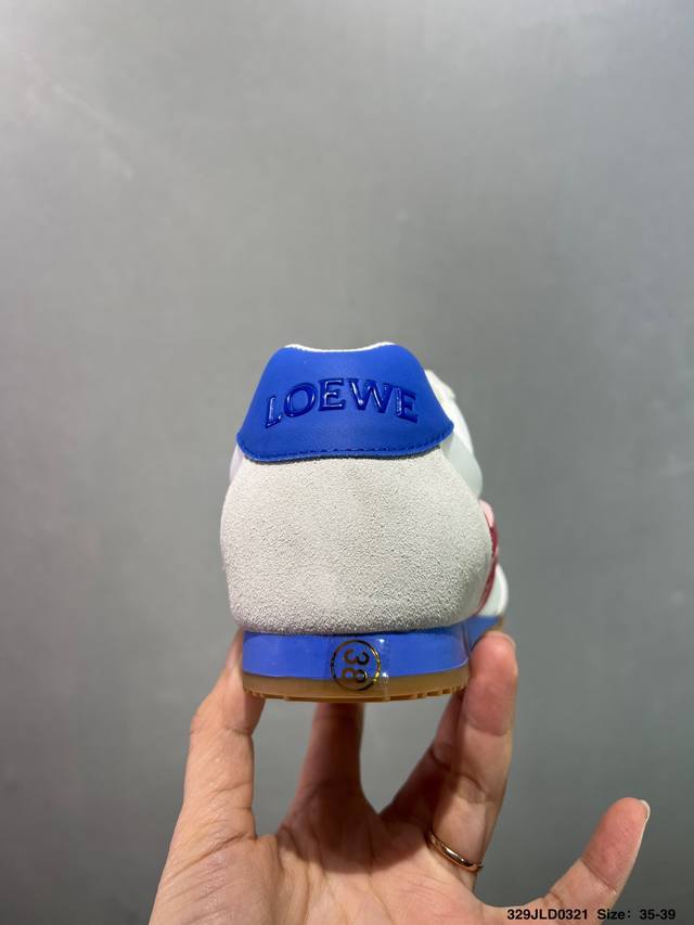 外贸出口订单 广东原厂 作为Loewe的标志性设计 超柔软,轻便且灵活的鞋底,新的波浪纹理橡胶外底,延伸至鞋头,升级的柔软皮革内衬和鞋床,提供最大舒适感,后跟有3D注塑橡胶徽标,真皮和皮料混搭彰显复古风格 内增高拼色德训鞋 阿甘鞋 小白鞋 拼色拼接鞋面 非常高级隐藏式小内增高 脚后跟设计新颖 柔软舒适 会被评为年度最舒适的暴走鞋 如履平地 原版细节 鞋面由进口麂皮 牛皮 原版布拼接 牛皮垫脚