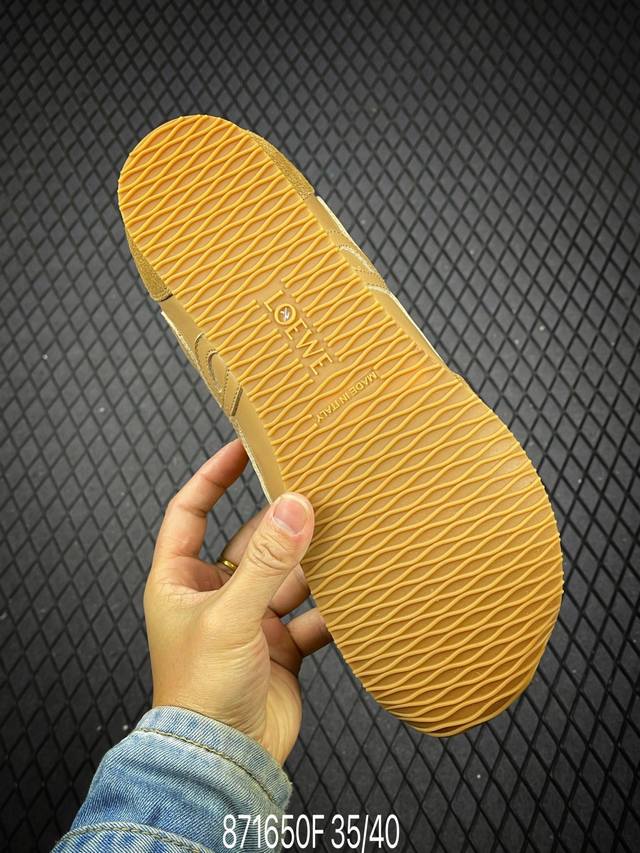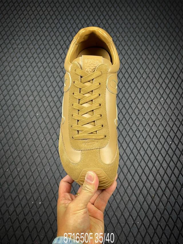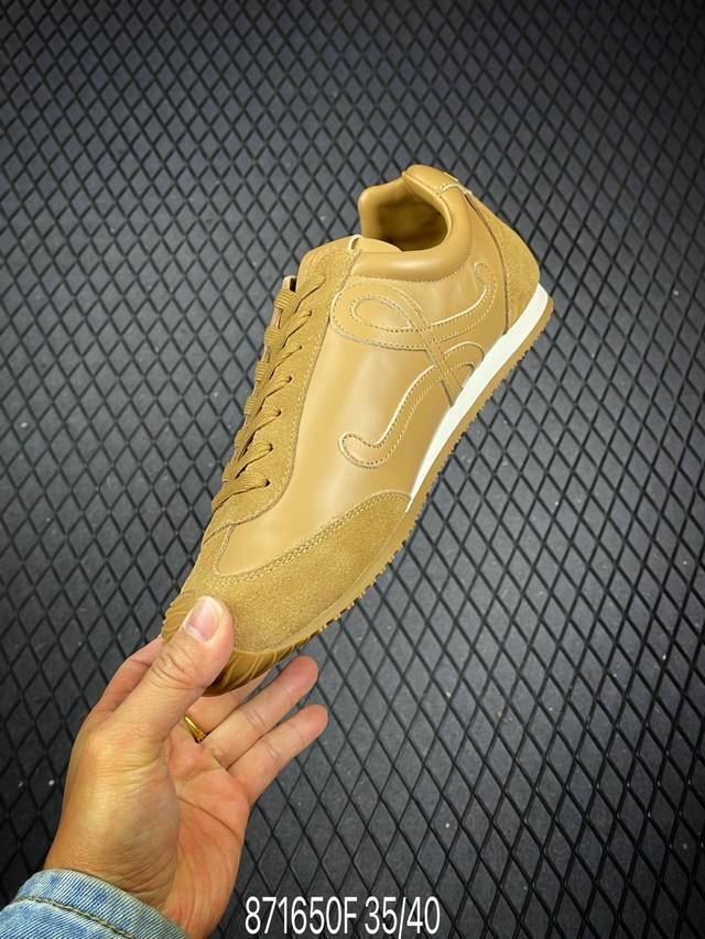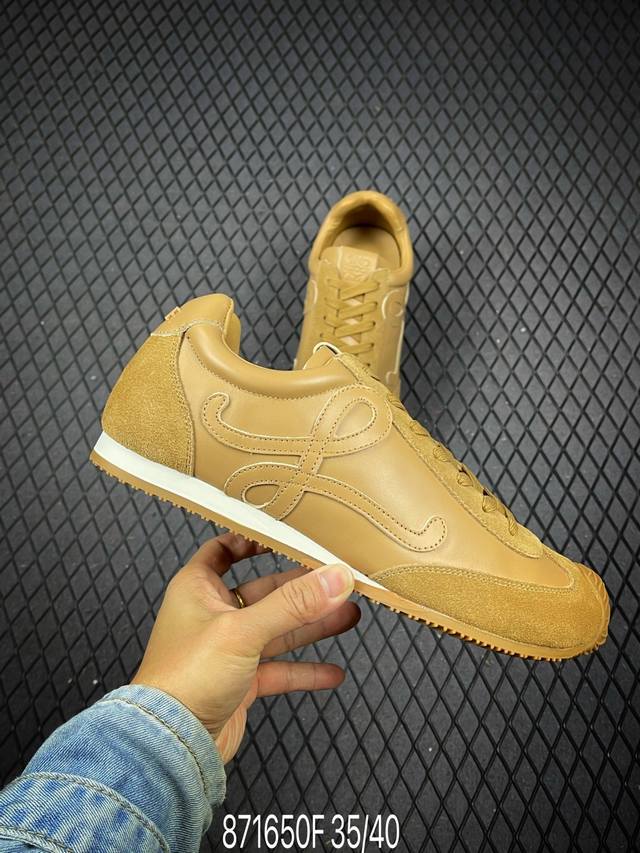 新款广东原厂 罗意威Loewe 2025 | Ballet Runner2.0 新款芭蕾舞鞋 超级棒 不对称鞋头造型,作为Loewe的标志性设计 超柔软,轻便且灵活的鞋底,新的波浪纹理橡胶外底,延伸至鞋头,升级的柔软皮革内衬和鞋床,提供最大舒适感,后跟有3D注塑橡胶徽标,真皮和皮料混搭彰显复古风格 内增高拼色德训鞋 阿甘鞋 小白鞋 拼色拼接鞋面 非常高级隐藏式小内增高 脚后跟设计新颖 柔软舒适 会被评为年度最舒适的暴走鞋 如履平地 原版细节 鞋面由进口麂皮 牛皮 原版布拼接 牛皮垫脚