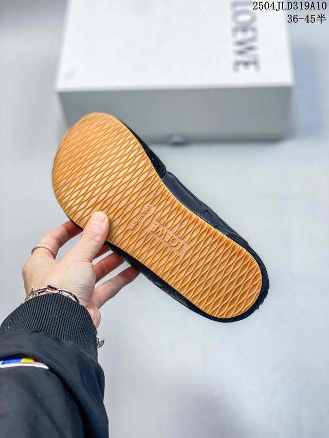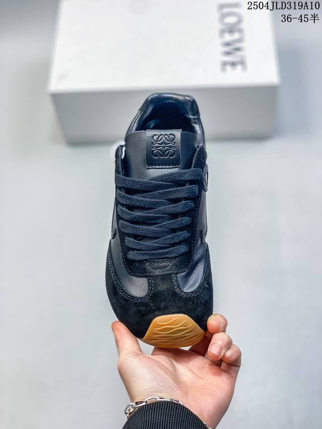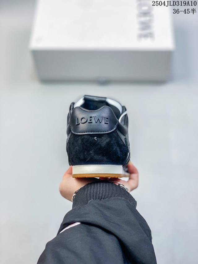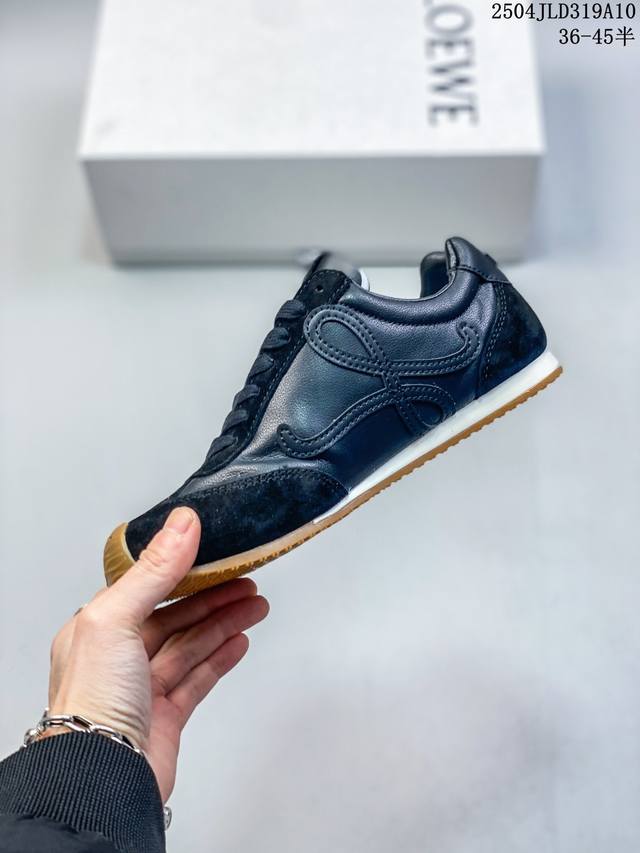 Loewe 罗意威 Ballet Runner 皮革 简约圆头 系带 低帮板鞋 运动休闲鞋这双鞋是Loewe新发布的Ballet Runner 2.0,被誉为“斩女球鞋”。时尚与舒适并存!你是否也被罗意威的阿甘鞋所吸引?这款鞋不仅外观时尚,而且穿着非常舒适,无论是搭配什么类型的裤子都很好看!这是一双爆款鞋,爆款的核心在于鞋头设计 在德训鞋基础上,对鞋头进行扭曲处理,形成一种不对称的 T字头,看起来十分有趣、圆钝可爱,上线即热卖。