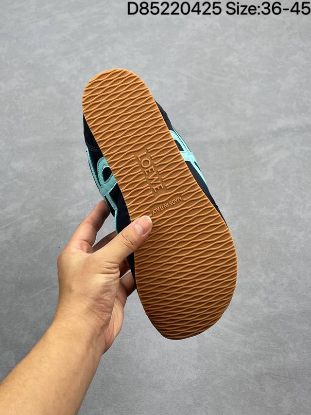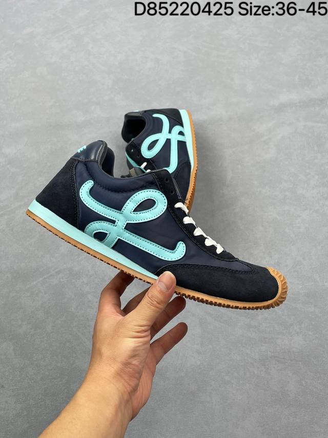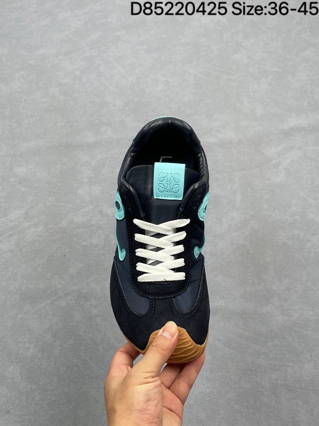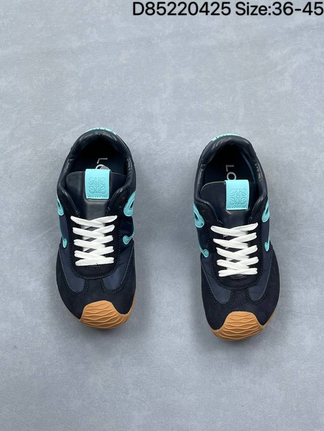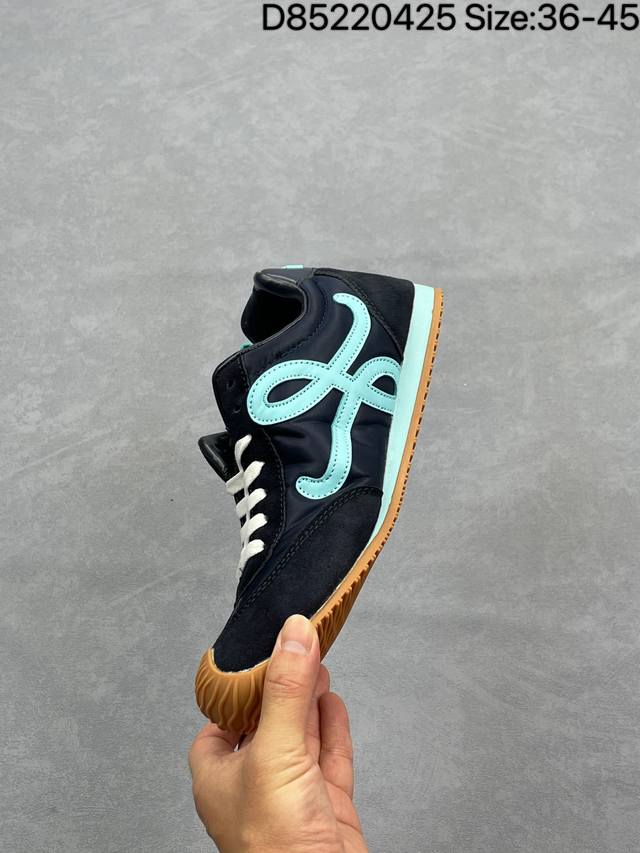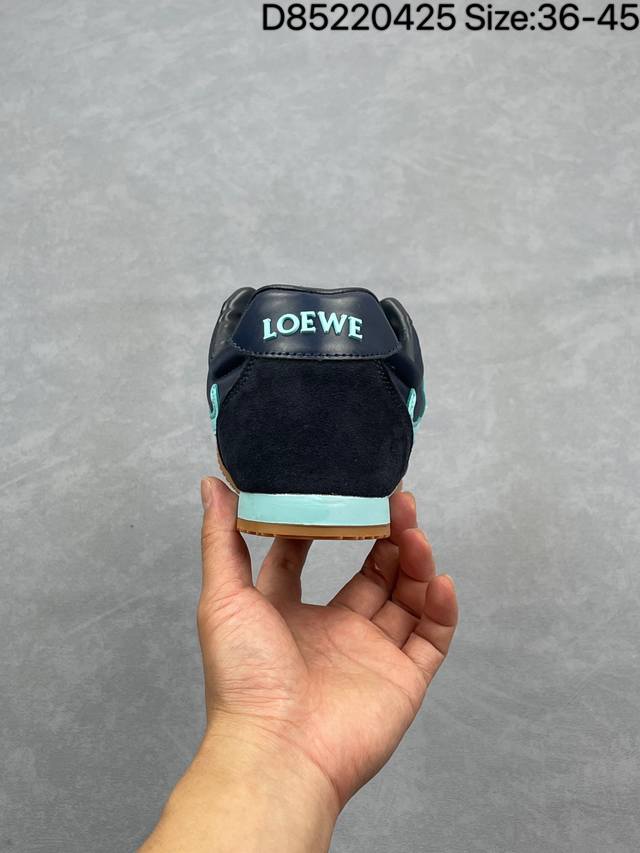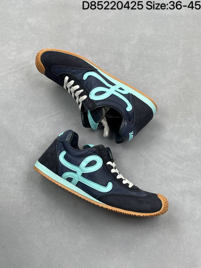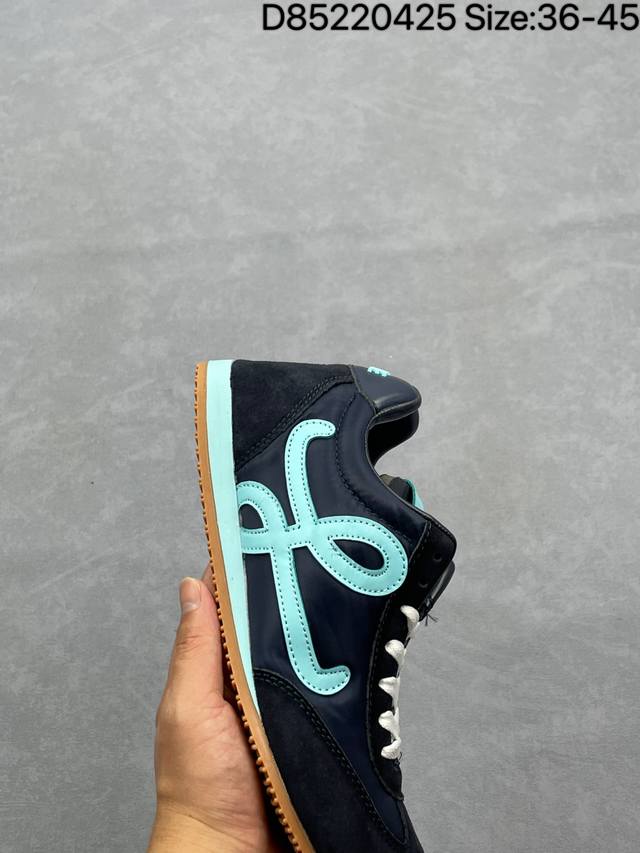Loewe Ballet Runner 2.0 罗意威 低帮 小牛皮圆头系带低邦生活休闲鞋 Loewe作为马德里的工匠合作社正式创立,之后被德国企业家Enrique Loewe Rossberg并入一个先 L锋奢侈品集团。Andersonh颇具前瞻性的愿景为Loewe的必备男装单品注入含蓄不羁的活力。机车夹克、条纹针织品、经过重新演绎的衬衫和拼色皮革配饰都呈现出精美形态和前卫色感,流露出现代阳刚气质。