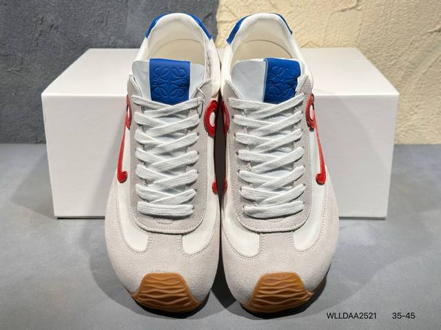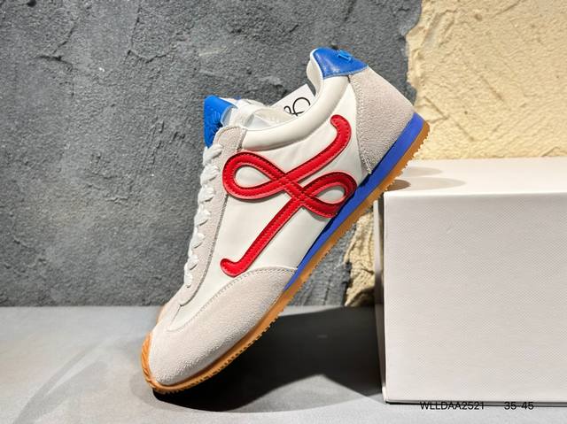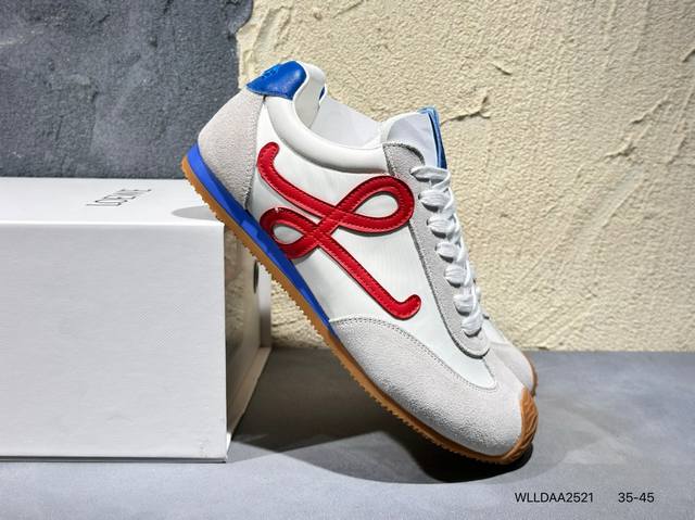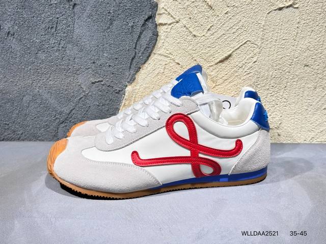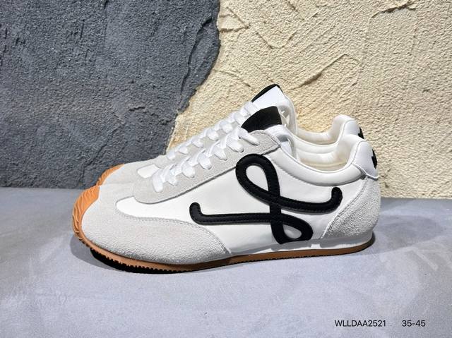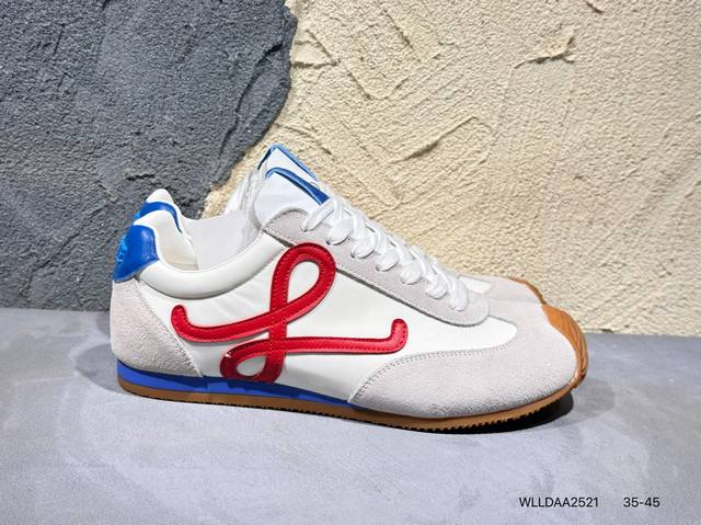 配件丢失扣10 罗意威Loewe Ballet Runner 2.0 Sneakers 芭蕾舞2.0系列阿甘复古风德训薄底百搭休闲运动鞋 Max推荐版本 市面最高性价比 实体平台跑量 主打推荐好货 采用反绒牛皮革拼接头层皮饰片鞋面材质鞋身原装高密度防刮尼龙面料,极好柔软效果双层乳胶缓震鞋垫外部搭配轻量Eva缓震组合橡胶防滑片装外底不对称鞋头设计、袜状内部结构,轻盈橡胶外底延伸至鞋头 20 毫米鞋跟,附白色和同色系鞋带侧面饰有 L 徽标,鞋舌饰有压纹 Anagram 后跟标签饰有注