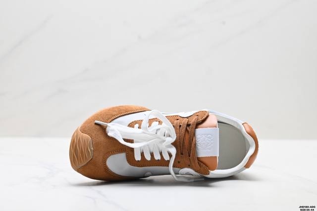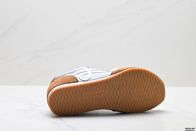 公司级Loewe Ballet Runner 2.0 罗意威 Sneakers系列阿甘复古风德训薄底百搭休闲运动鞋 DDD 广东纯原大厂出品 不对称鞋头设计 袜状内部结构 轻盈橡胶外底延伸至鞋头 后跟标签饰有注塑橡胶 Loewe 标志 DDD Max推荐版本 升级原楦型开发纸版 全手工拉帮工艺成型 采用反绒牛皮革拼接头层皮饰片 鞋面材质 鞋身原装高密度防刮尼龙面料 极好柔软效果 双层乳胶缓震鞋垫 外部搭配轻量 Eva缓震组合橡胶防滑片装外底 DDD 尺码:35-44 DDD Id:Jhd180-Adg D