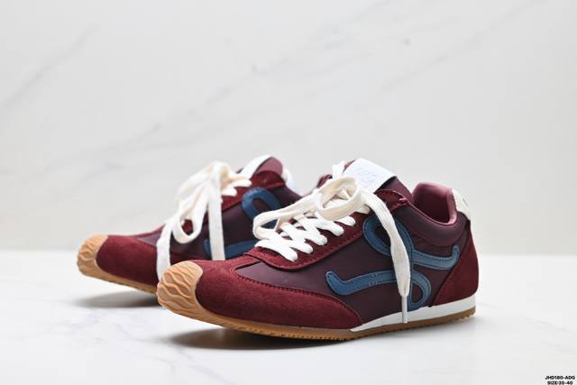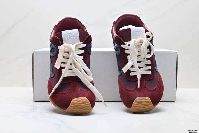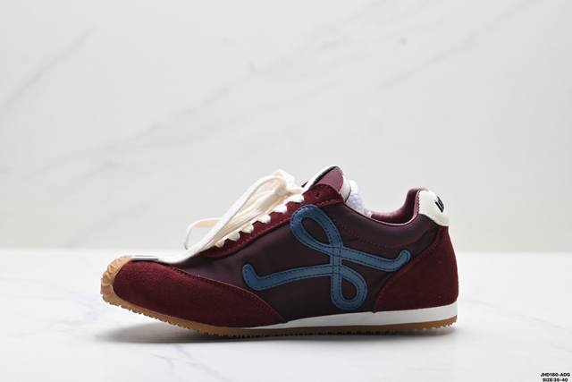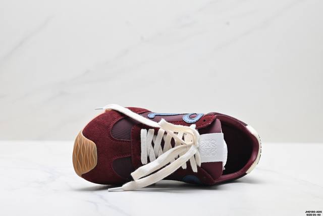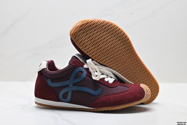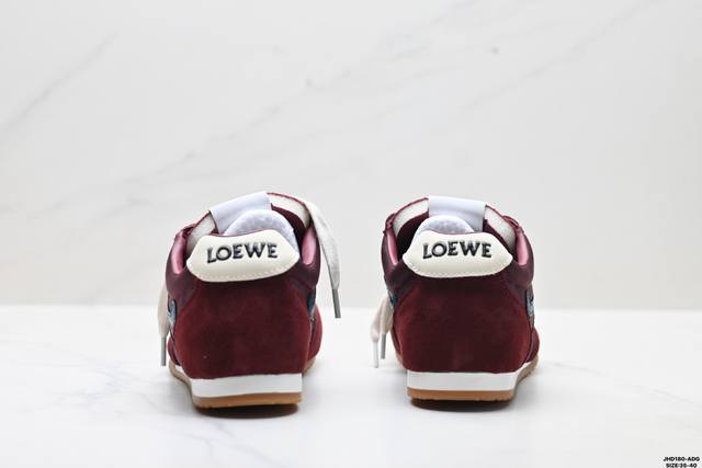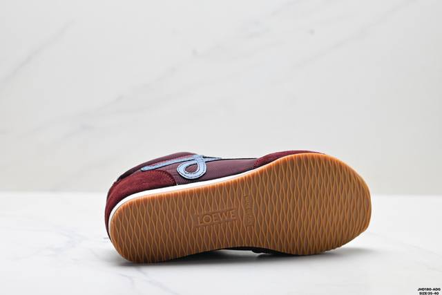 公司级Loewe Ballet Runner 2.0 罗意威 Sneakers系列阿甘复古风德训薄底百搭休闲运动鞋 DDD 广东纯原大厂出品 不对称鞋头设计 袜状内部结构 轻盈橡胶外底延伸至鞋头 后跟标签饰有注塑橡胶 Loewe 标志 DDD Max推荐版本 升级原楦型开发纸版 全手工拉帮工艺成型 采用反绒牛皮革拼接头层皮饰片 鞋面材质 鞋身原装高密度防刮尼龙面料 极好柔软效果 双层乳胶缓震鞋垫 外部搭配轻量 Eva缓震组合橡胶防滑片装外底 DDD 尺码:35-40 DDD Id:Jhd180-Adg D