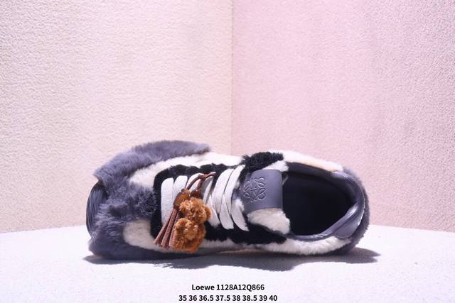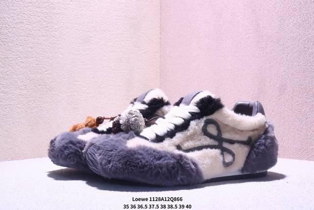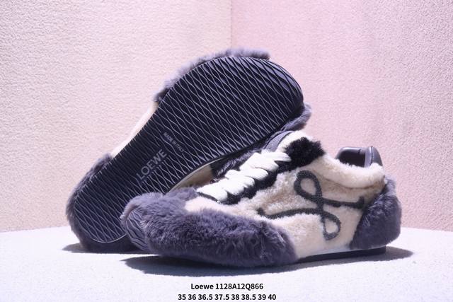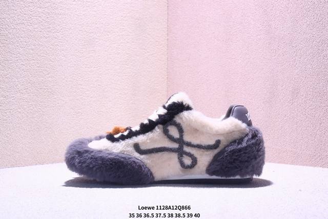 罗意威 Loewe Ballet Runner 2.0 Sneakers 芭蕾舞2.0系列阿甘复古风德训薄底百搭休闲运动鞋 DDD #不对称鞋头设计、袜状内部结构,轻盈橡胶外底延伸至鞋头。 DDD #20 毫米鞋跟,附白色和同色系鞋带 DDD #侧面饰有 L 徽标,鞋舌饰有压纹 Anagram,后跟标签饰有注塑橡胶 Loewe 标志 DDD #升级原楦型开发纸版 DDD #全手工拉帮工艺成型 DDD #采用反绒牛皮革拼接头层皮饰片鞋面材质 DDD #鞋身原装高密度防刮尼龙面料,极好柔软效果 DDD #双层