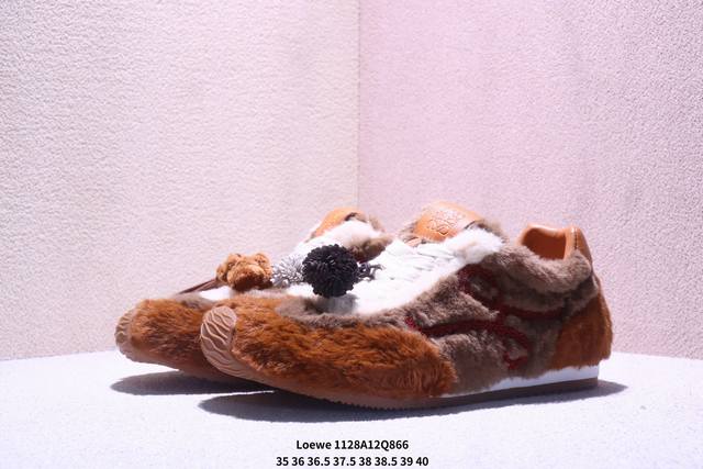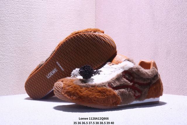 罗意威 Loewe Ballet Runner 2.0 Sneakers 芭蕾舞2.0系列阿甘复古风德训薄底百搭休闲运动鞋 DDD #不对称鞋头设计、袜状内部结构,轻盈橡胶外底延伸至鞋头。 DDD #20 毫米鞋跟,附白色和同色系鞋带 DDD #侧面饰有 L 徽标,鞋舌饰有压纹 Anagram,后跟标签饰有注塑橡胶 Loewe 标志 DDD #升级原楦型开发纸版 DDD #全手工拉帮工艺成型 DDD #采用反绒牛皮革拼接头层皮饰片鞋面材质 DDD #鞋身原装高密度防刮尼龙面料,极好柔软效果 DDD #双层