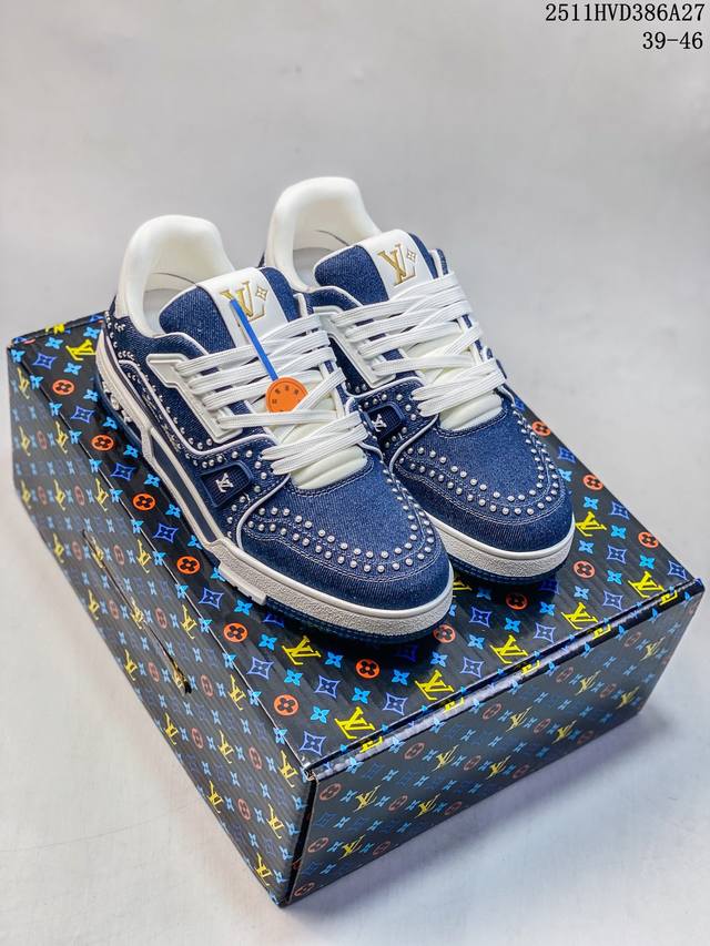 东莞纯原 市售顶级版本 DDD 驴家Lv Trainer 原版完美楦型 东莞大厂出产 品控胜过市面百分之95 DDD 原版正确Tpu大底 标准原版大底克重152K 独家底磨 实物到手质感重量完全区别与市面版本。 DDD 开发费5W+ 质感媲美原版 密集度超高 区别于同行色泽质感 意大利进口头层一刀切小牛皮 皮料厚实度韧性高于市面 DDD 原版垫脚聚米微料加透气英伦网布 都是按正品一比一打造开发 不偷半点料 不掺半点假 DDD 细节原版一致 可对比 全包套原版包装配件 目前市面一梯队级别 DDD 市场太杂请