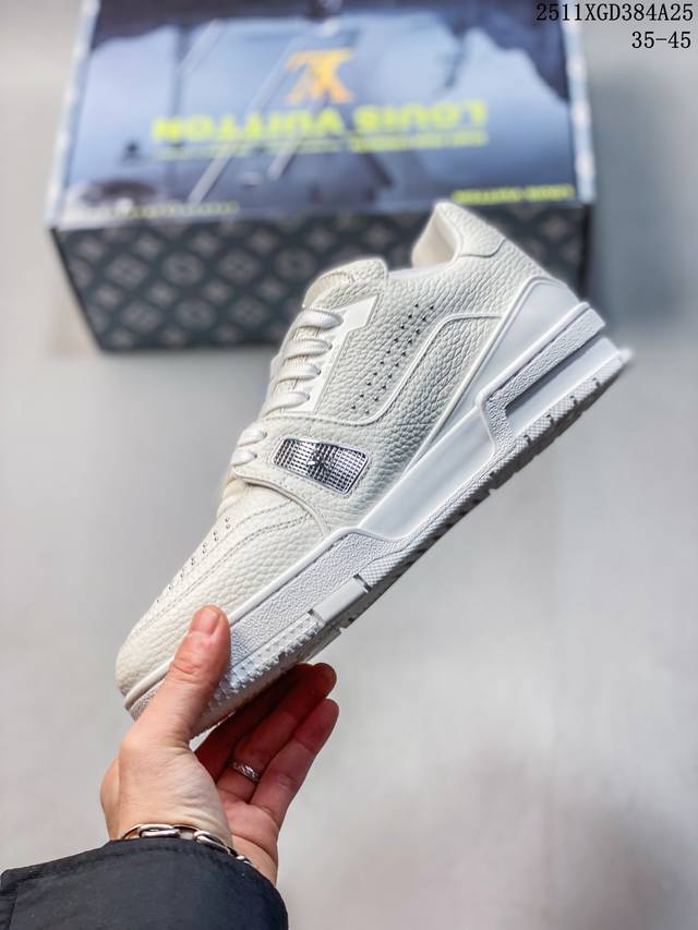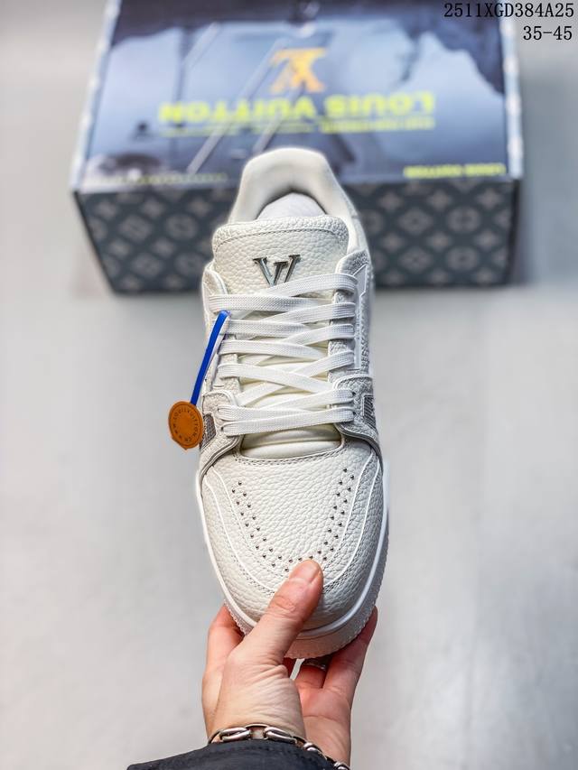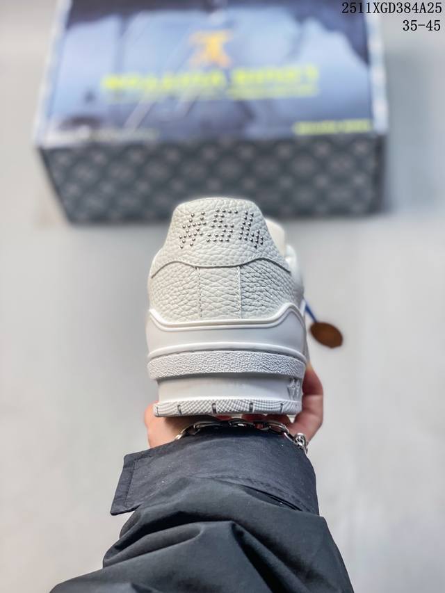 东莞纯原 DDD 驴家Lv Trainer 原版完美楦型 东莞大厂出产 品控胜过市面百分之95 黑色 白色 铆钉配色 DDD 原版正确Tpu大底 标准原版大底克重152K 独家底磨 实物到手质感重量完全区别与市面版本。 DDD 开发费5W+ 质感媲美原版 密集度超高 区别于同行色泽质感 意大利进口头层一刀切小牛皮 皮料厚实度韧性高于市面 DDD 原版垫脚聚米微料加透气英伦网布 都是按正品一比一打造开发 不偷半点料 不掺半点假 DDD 细节原版一致 可对比 全包套原版包装配件 目前市面一梯队级别 DDD 市