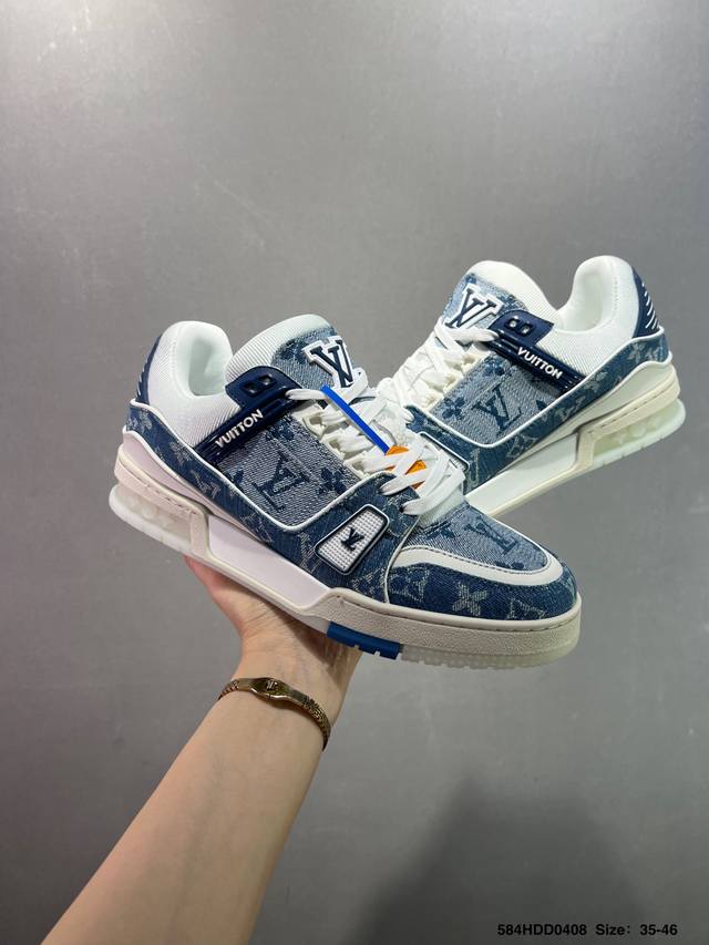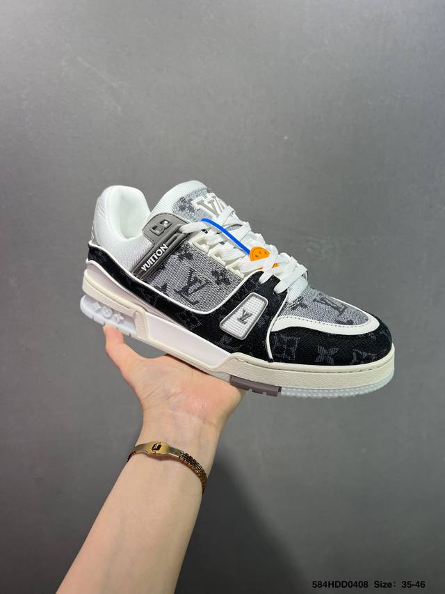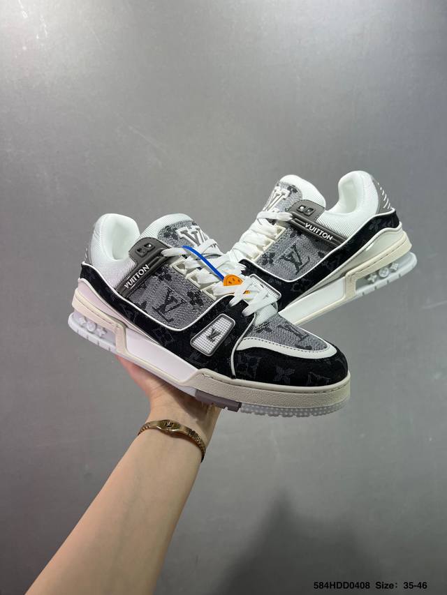 新款 Lv Trainer最新配色运动鞋 L家 篮球鞋风格运动鞋 该鞋由艺术总监 Virgil Abloh设计 垫脚聚米微料加透气英伦网布 细节原版一致 Size:36-46 Id:584Hdd0408