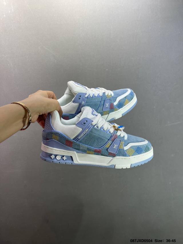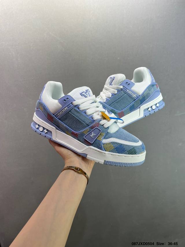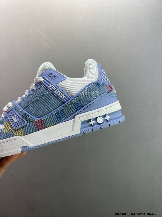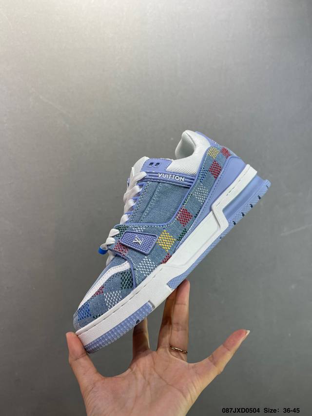 新款 Lv Trainer最新配色运动鞋 L家 篮球鞋风格运动鞋 该鞋由艺术总监 Virgil Abloh设计 垫脚聚米微料加透气英伦网布 细节原版一致 Size:36-45 如图 Id:087Jxd0504