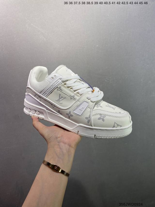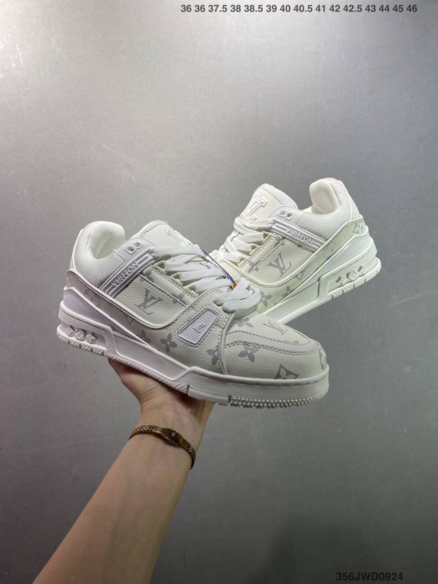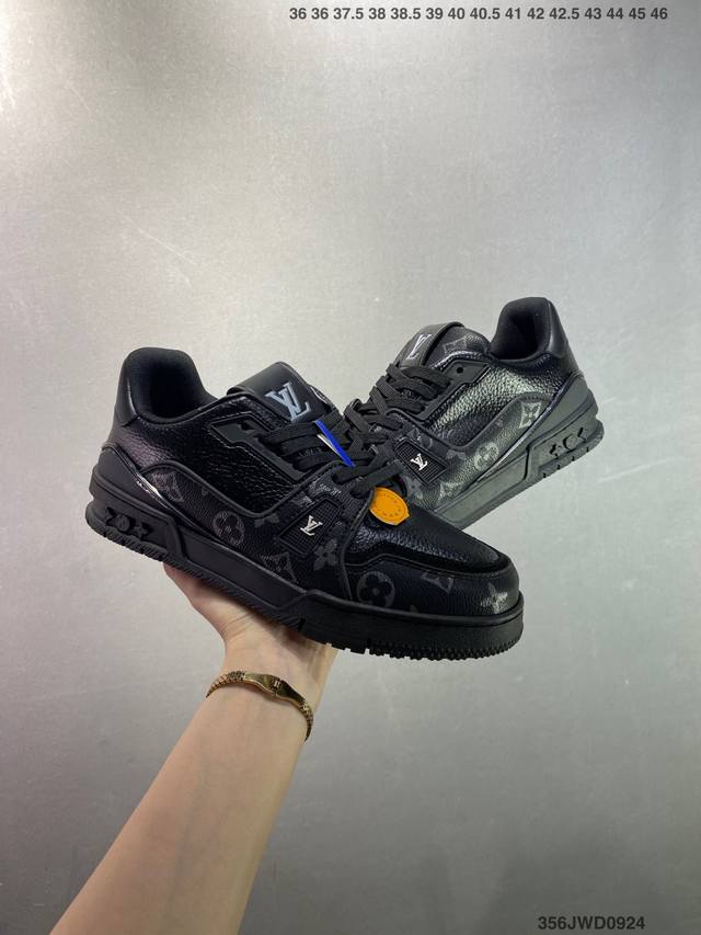 新款 Lv Trainer最新配色运动鞋 L家 篮球鞋风格运动鞋 该鞋由艺术总监 Virgil Abloh设计 垫脚聚米微料加透气英伦网布 细节原版一致 Size:36-46 Id:356Jwd0924