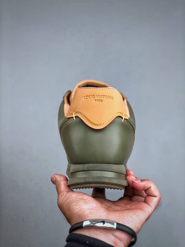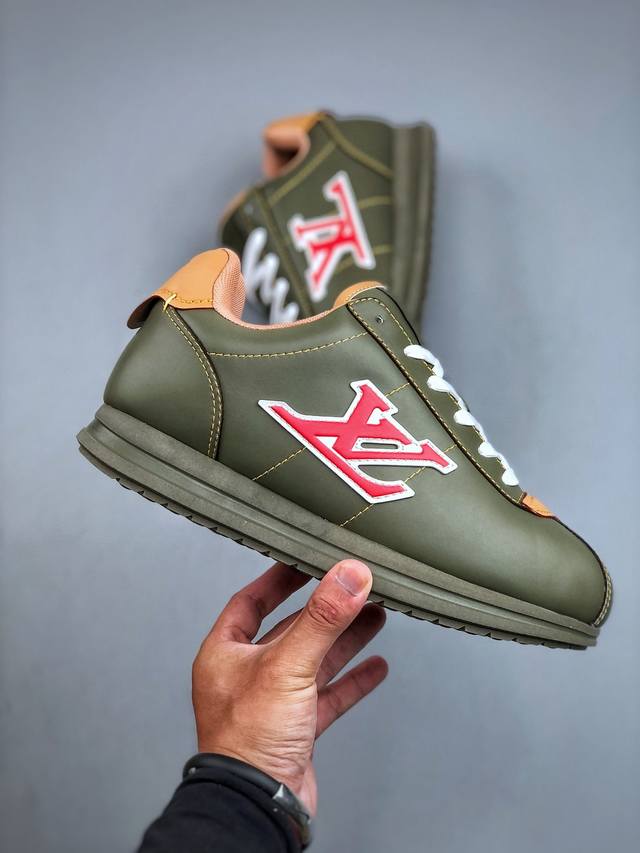 本款 Lv Buttersoft 运动鞋出自路易威登男装创意总监 pharrell Williams 之手,致敬运动鞋首登时尚舞台的 1960 年代。羊皮革、牛皮革和衬垫鞋面带来柔软舒适的穿着体验,Lv 字母、路易威登皮具元素、pharrell Williams 肖像和龙虾图案压纹呼应 2025 秋冬男士秀场主题。