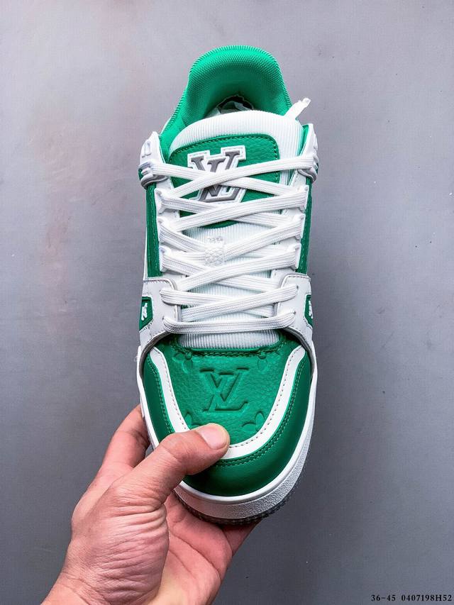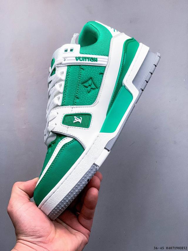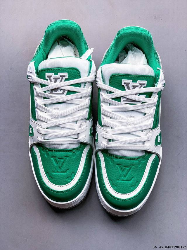 Louis Vuitton Trainer Lv 路易威登 独家全新升级最新包装,海淘代购同渠道品质 高端零售 外贸充正专供 原版购入开发 Zp级全套包装 完美楦型 正确卡色 细节与原版一致 请注意区分市面通货版本 Virgil Abloh亲自操刀设计全新Lv路易威登Louis Vuitton Trainer Sneaker Low休闲运动文化百搭篮球板鞋 广东原产#升级原版一致礼品鞋盒及全套代购包装说明书防尘布袋物件,正确原装进口